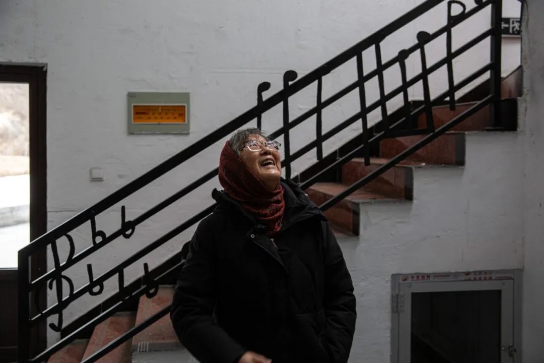 2022年2月11日,河北省保定市阜平县城南庄镇马兰村,邓小岚在月亮舞台的后台,看着充满音乐元素的建筑满心欢喜。新京报记者 郑新洽摄