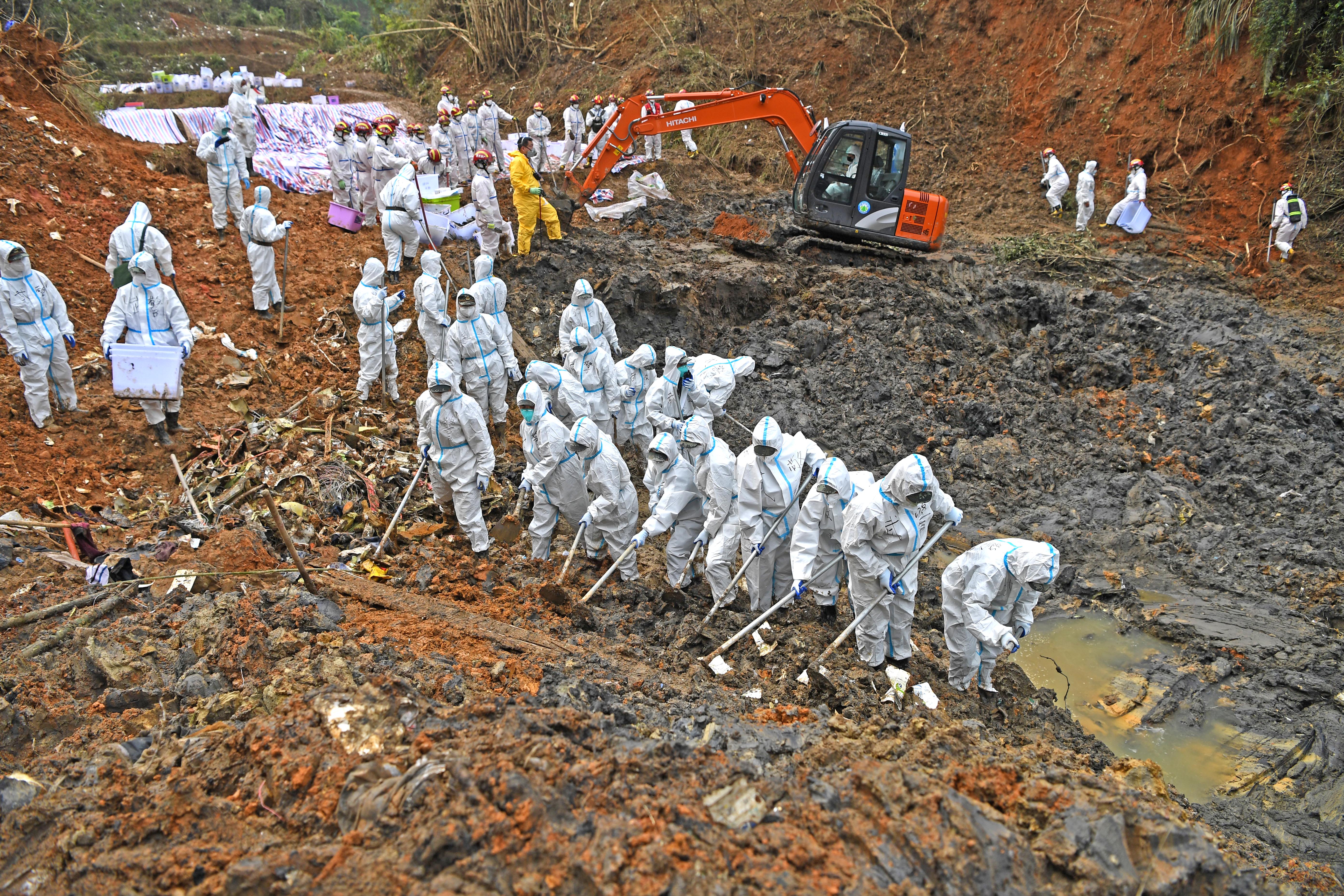 直击东航客机坠毁现场第六日 事故核心区展开拉网式搜索