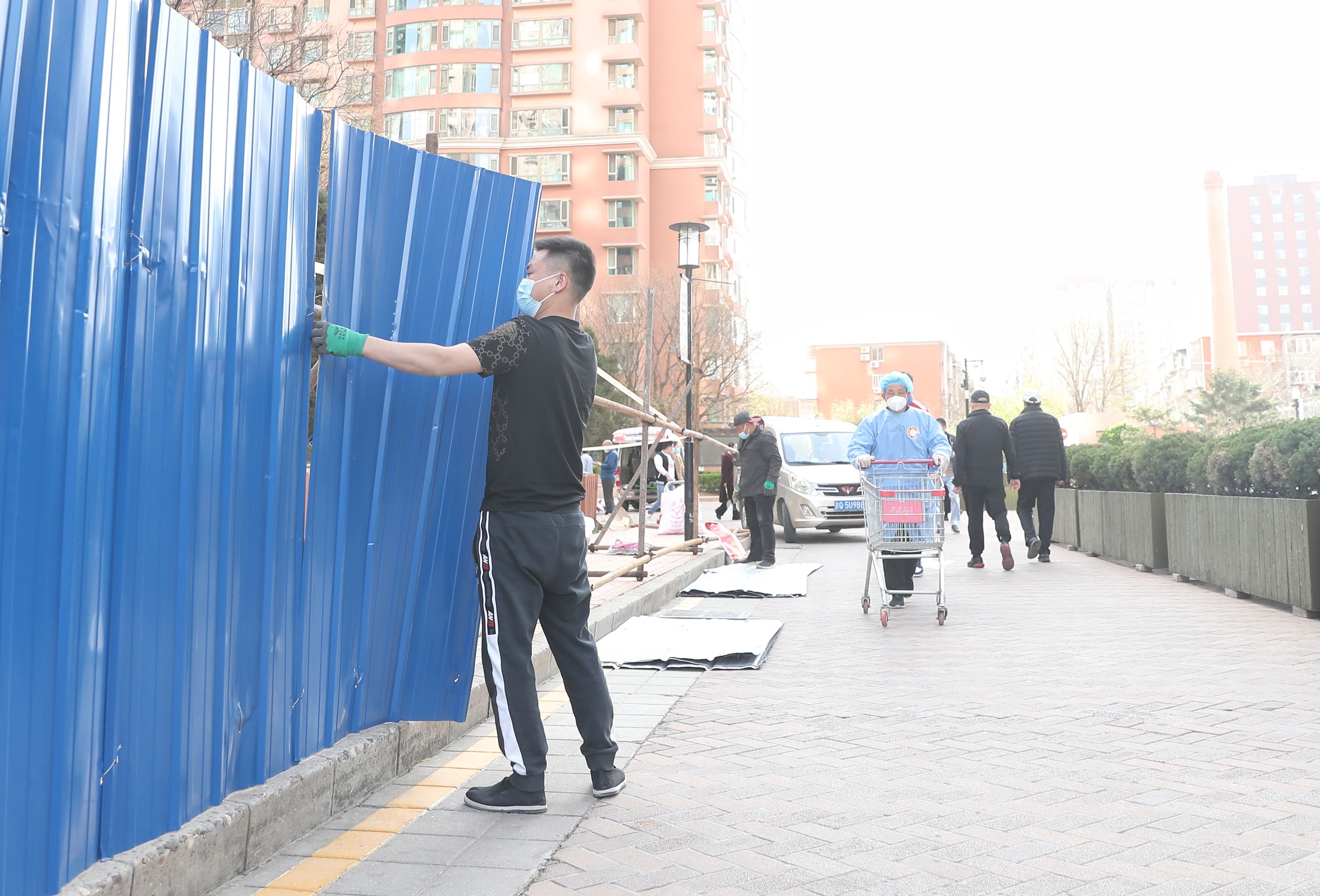 工作人员正在拆除管控围挡。新京报记者 王飞 摄