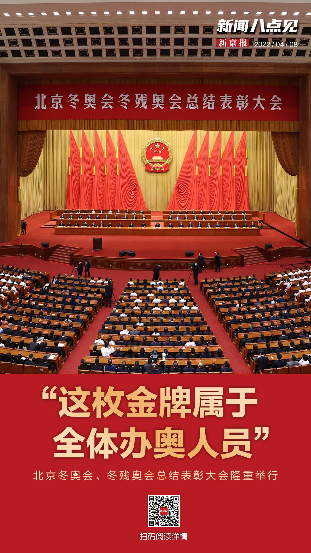 北京冬奥会、冬残奥会总结表彰大会4月8日上午在人民大会堂隆重举行。中共中央总书记、国家主席、中央军委主席习近平出席大会并发表重要讲话。金句来了!