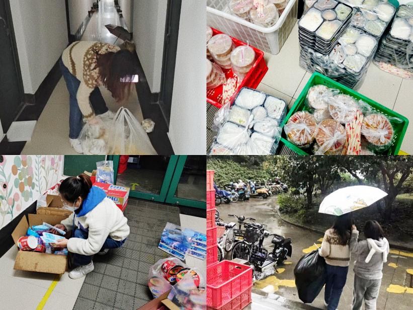 志愿者的力量开始在校园各个角落抽芽生长。如同一张密织的血管网,各楼长、楼层长、普通志愿者与学校老师、后勤人员一起,共同在校园内搭建出一条生机勃勃的传输管道。一日三餐和药品物资从管道那一头源源而来,善意和感谢从管道这一头传送回去。