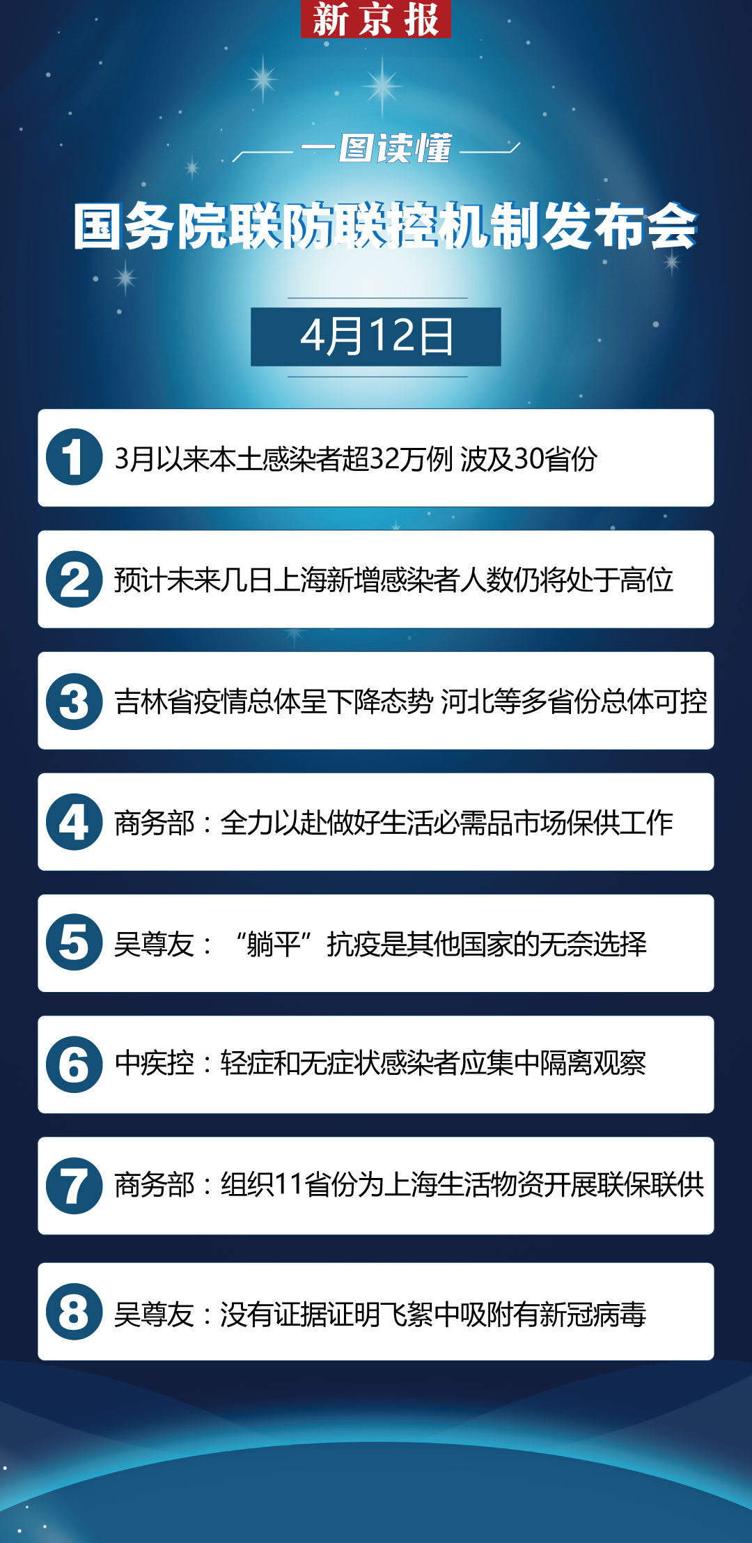 4月11日0—24时,31个省(自治区、直辖市)和新疆生产建设兵团报告新增本土确诊病例1251例,本土无症状感染者本土23295例。当前疫情仍在高位运行,波及范围进一步扩大。目前各地防控情况如何?4月12日,国务院联防联控机制召开新闻发布会,介绍从严从实抓好疫情防控工作有关情况。