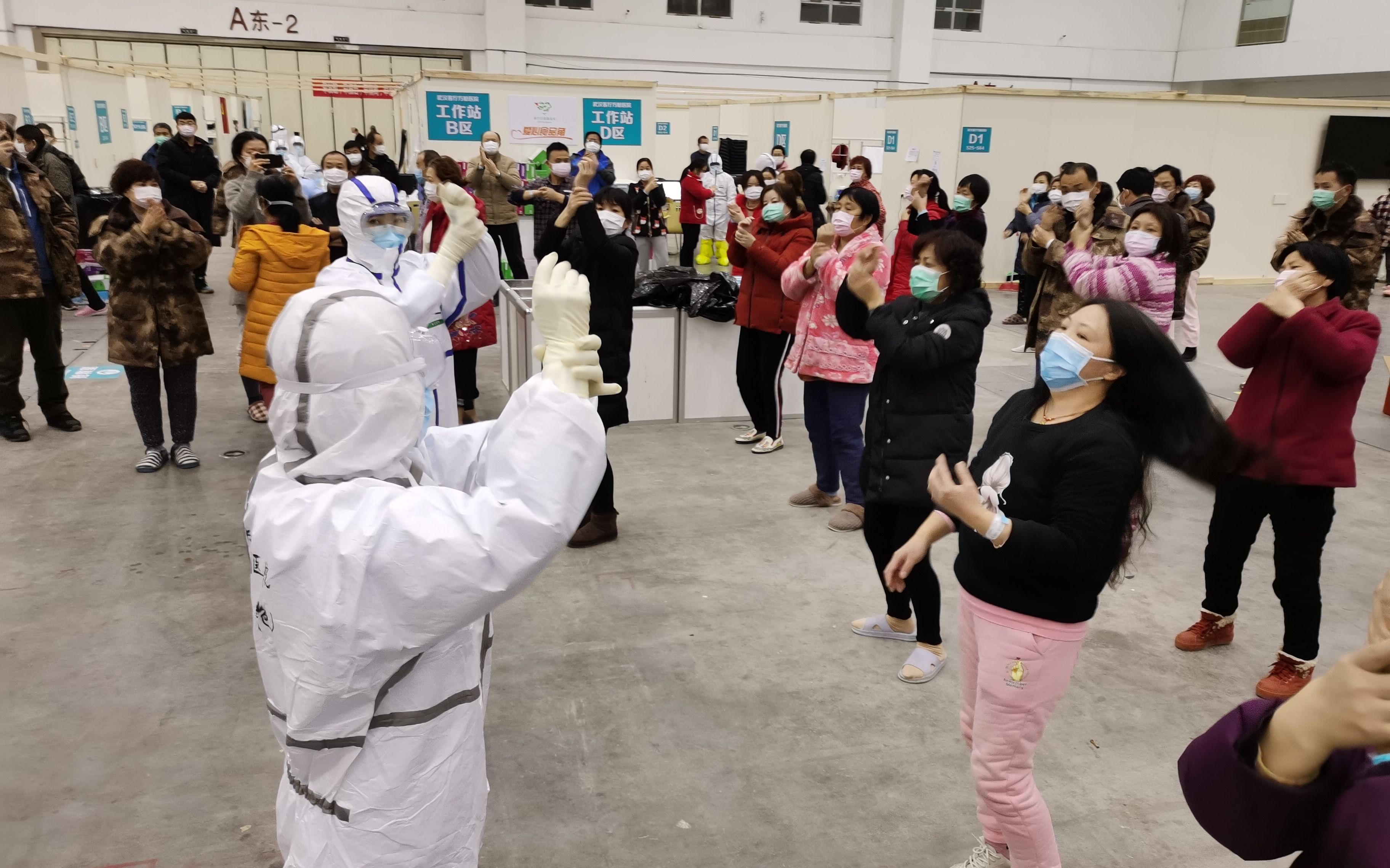 进舱以后我和患者进行了一些交流,感觉大家主要是情绪不稳定,比较焦虑。如何帮助患者调整好心态、调动自身免疫力,我们围绕着这一点来设定目标、开展工作。交流过程中,患者得知我们是从武汉来的,而武汉大学中南医院还曾经接管过雷神山医院和武汉首批最大的方舱医院,就跟我们说,“这下我们就更加有信心了。”