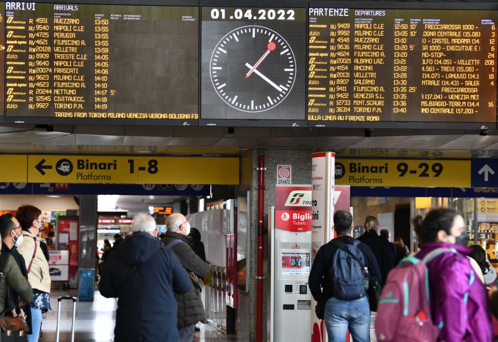 2022年4月1日,旅客在意大利罗马特米尼火车站了解列车信息。(新华社记者金马梦妮摄)