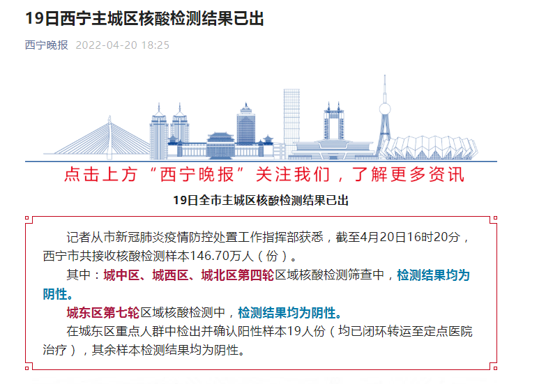 其中:城中区、城西区、城北区第四轮区域核酸检测筛查中,检测结果均为阴性。
