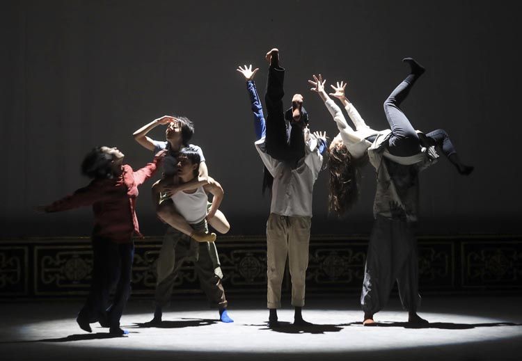 4月20日,北京吉祥大戏院,年轻演员们表演现代舞《假行僧》。