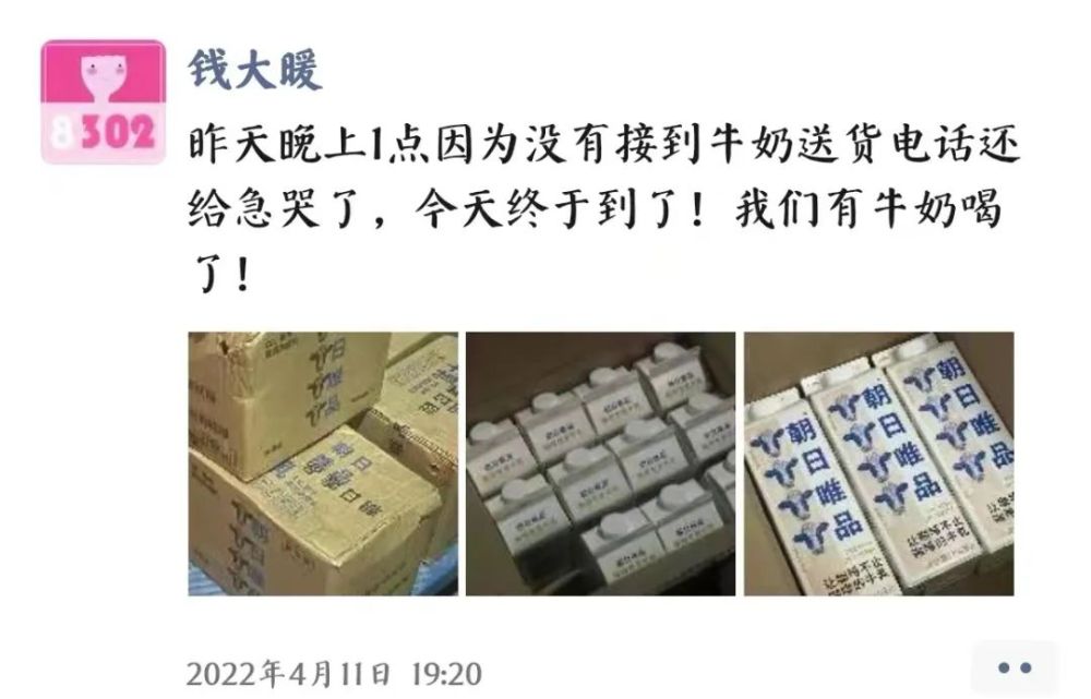 “从3月下旬开始,我就发现网上买菜没那么简单了,到了4月4日的时候,连我这个‘互联网选手’都感觉,菜不好抢了。那个时候,我牛奶喝光了,居民群里也有人说想喝牛奶,既然大家有共性需求,于是我就做了第一次团购。” 钱大暖说。