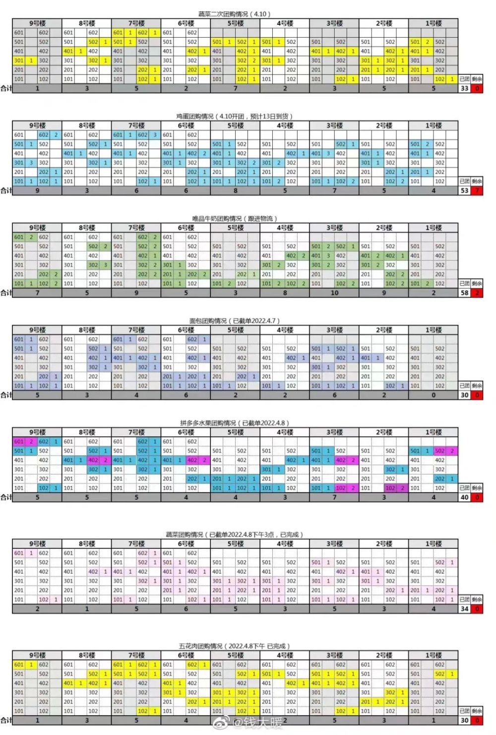 钱大暖说,日常工作受疫情影响,只剩下每周开一次周会,剩下的大部分时间都用在团购上。“我加了20来个供货群,一边跟供应商沟通,一边在线跟进已团商品的进度,一边还要用表格登记社区门牌号和采购数量……感觉像一个人打了3份工。”
