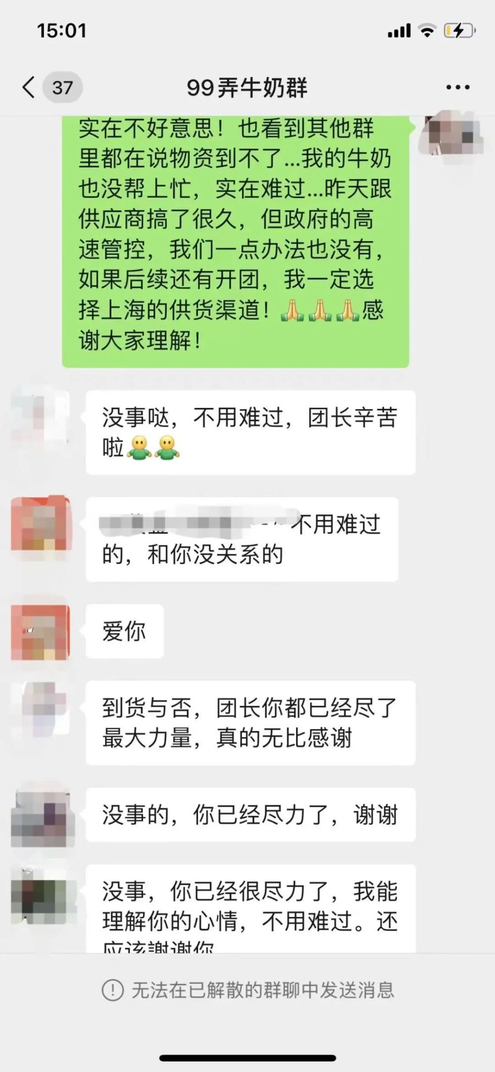 在上海杨浦区中原路某小区当“团长”的舒莹,也经历过类似的意外事件。“有一次组织大家团牛奶,商家明确3天内到货,我甚至留了点余地,只告诉大家第三天到货,如果早到了就是运气好。可到了第三天,商家直接甩来一条消息,告诉我道路管控,货暂时进不来。”
