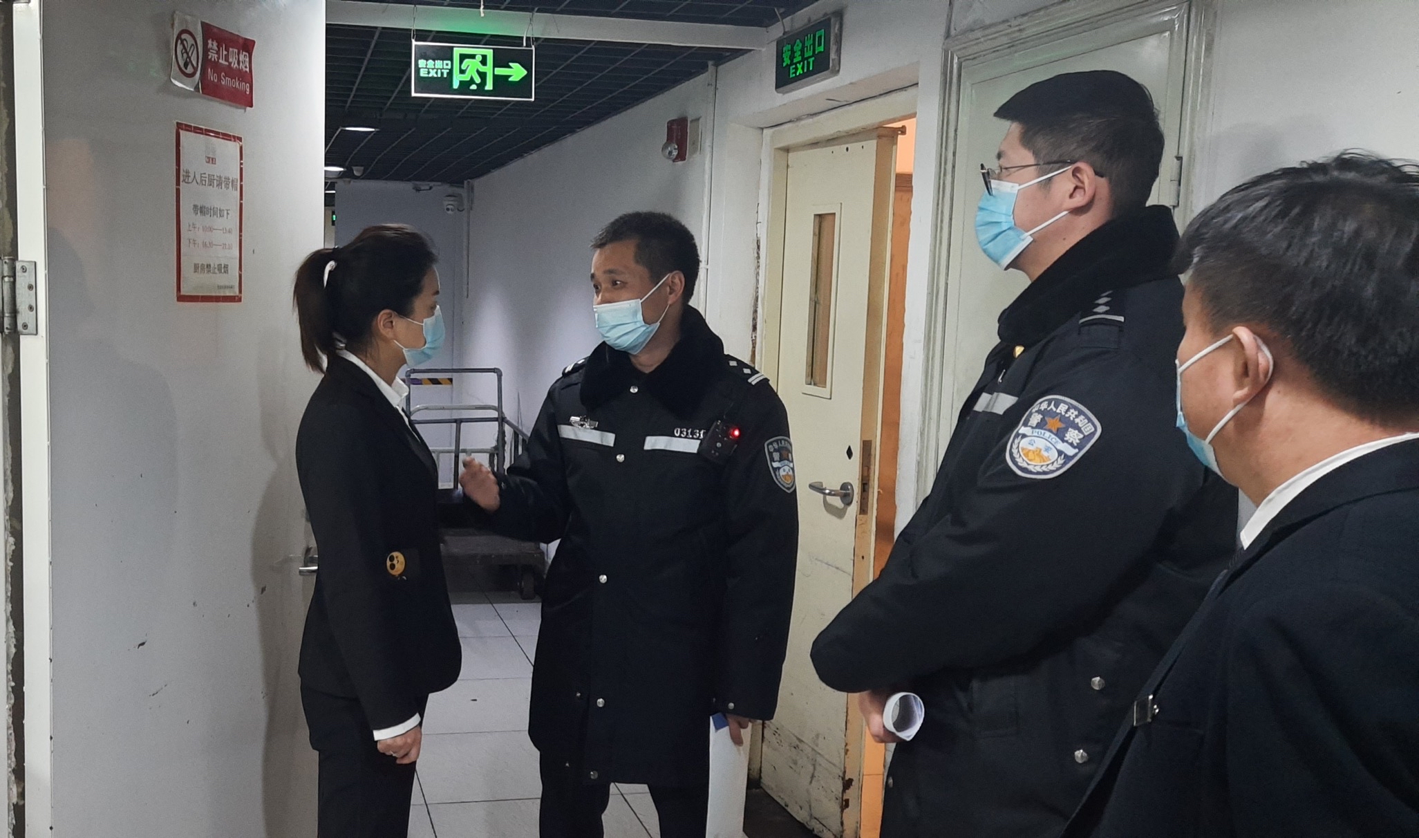 王光科和同事对辖区餐饮企业后厨进行摸排检查。受访者供图回想这段经历,会觉得亏欠了家人。我4个多月没正常回家生活,我爱人单位也有冬奥会保障任务,家里老人看着两个孩子。我记得冬奥会开幕式前一天下午,5岁的小女儿发烧将近40摄氏度,岳母实在没有办法给我打电话,我请了一会儿假带着孩子去了医院,没等她退烧就又走了。身边同事们基本都这样,不少人还是双警家庭,干脆把孩子送回老家。
