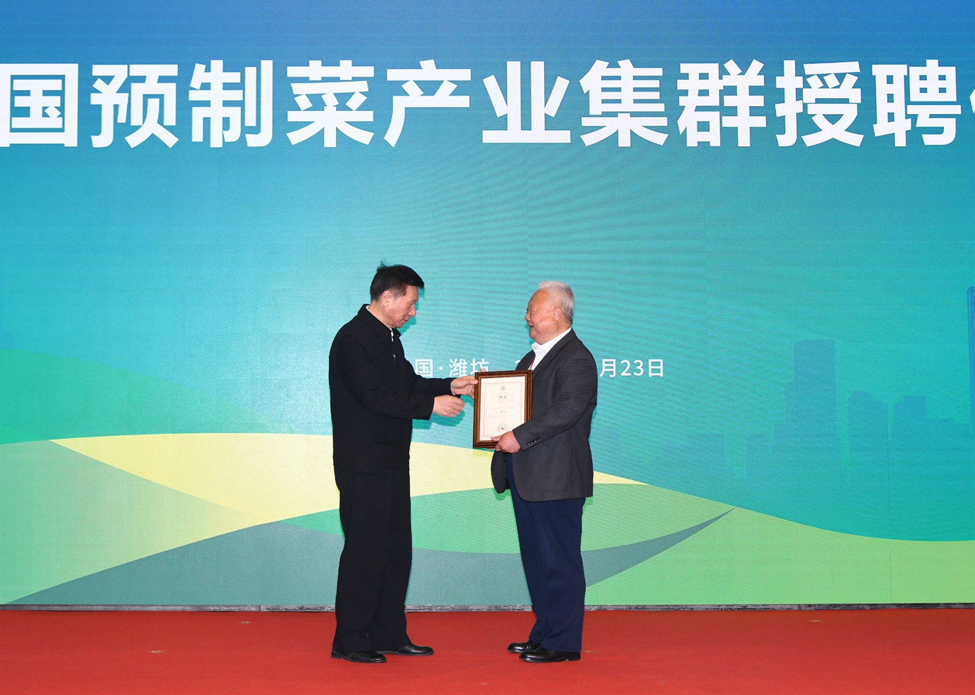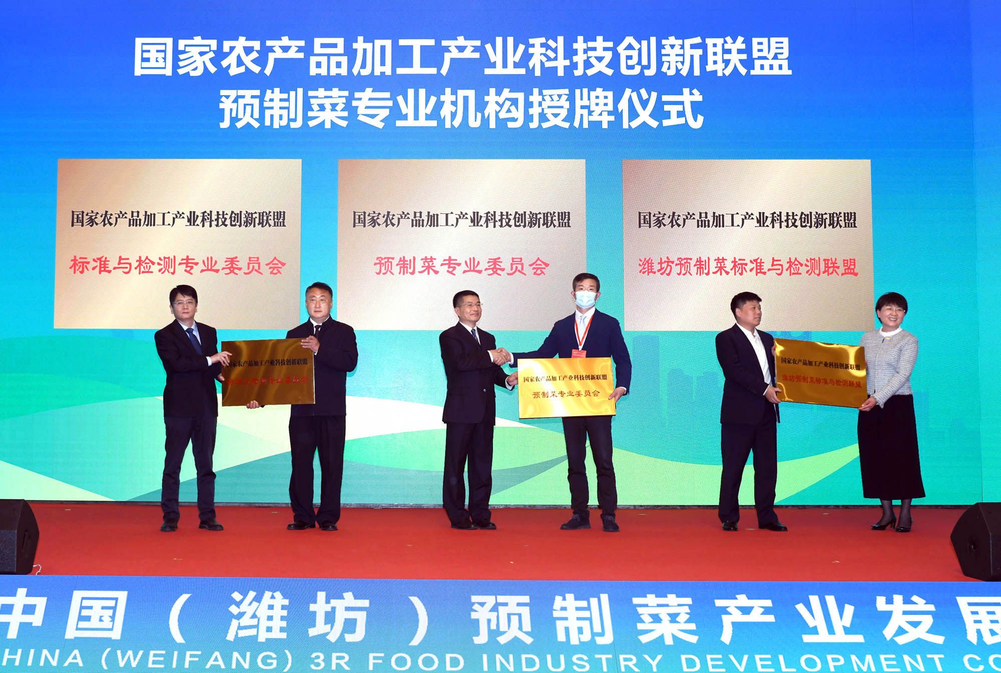 会上,举行了共建“中国预制菜产业名城”揭牌、国家农产品加工产业科技创新联盟预制菜专业机构授牌、食品农产品跨境服务统采平台暨中国预制菜产业交易服务中心启动、潍坊食品科学与加工技术研究院入驻、新鲁菜大赛战略合作和预制菜产业基金合作框架协议签约等仪式,宣布启动预制菜行业标准制定工作,成立中国食品工业协会预制菜和中央厨房专业委员会、全国预制菜产业集群,为陈光颁发全国预制菜产业集群首任主席聘书。日冷食品贸易(上海)有限公司董事长井户丰茂,日本清水物产株式会社董事浅野孝志,福克斯(中国)食品有限公司供应链总监欧拉夫·维特,中国预制菜产业联盟研究院专家委员会秘书长、恒生发布创始人昕原等国际友人和专业机构负责人分别作了视频发言。中国农业科学院中式食品加工与装备创新团队首席科学家、农业农村部预制菜行业标准制定牵头人张春晖作了《助推预制菜产业发展的思考与实践》专题报告。