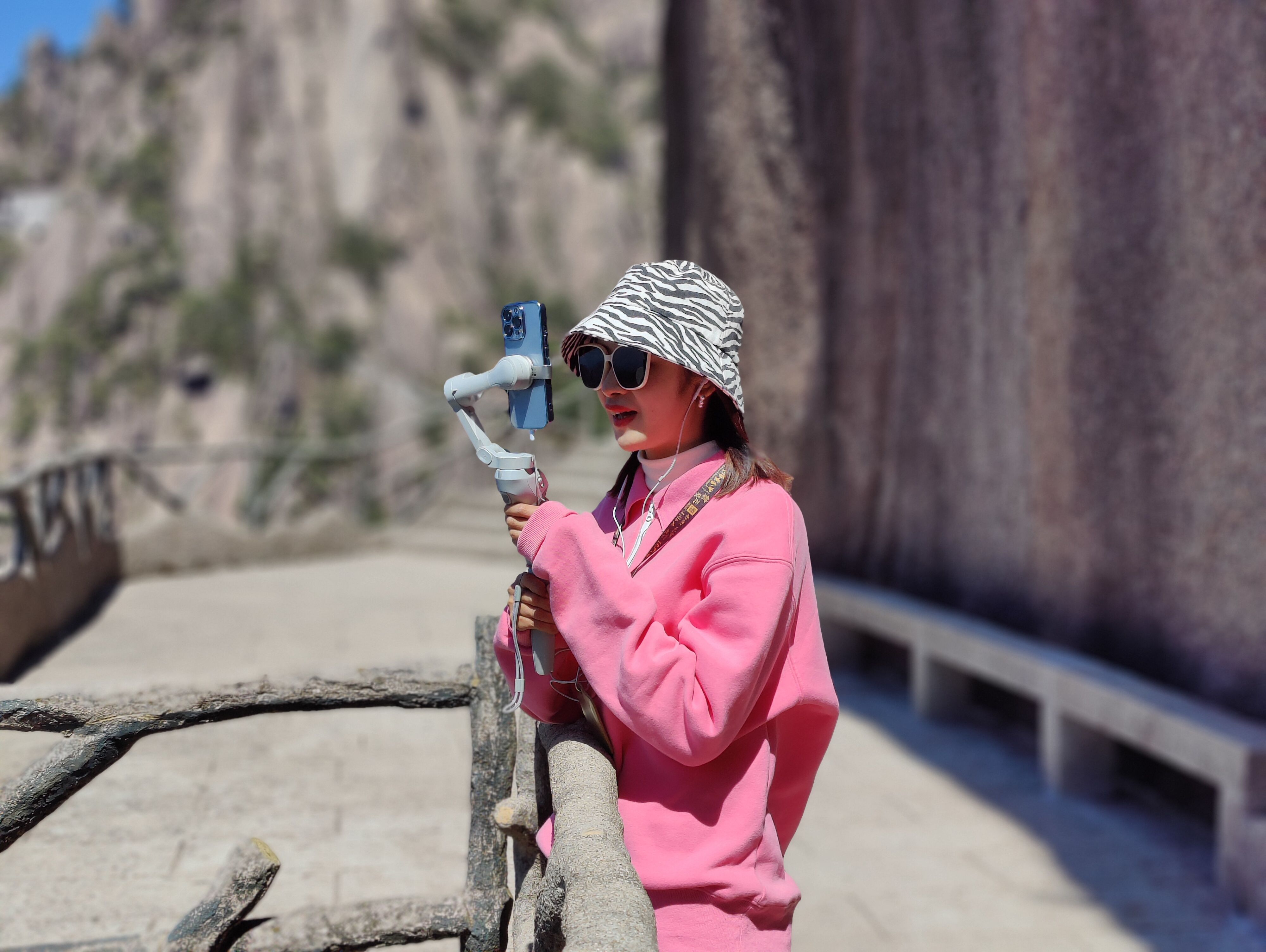 4月9日,蒋薇正在黄山风景区进行直播。新京报记者 汪畅 摄