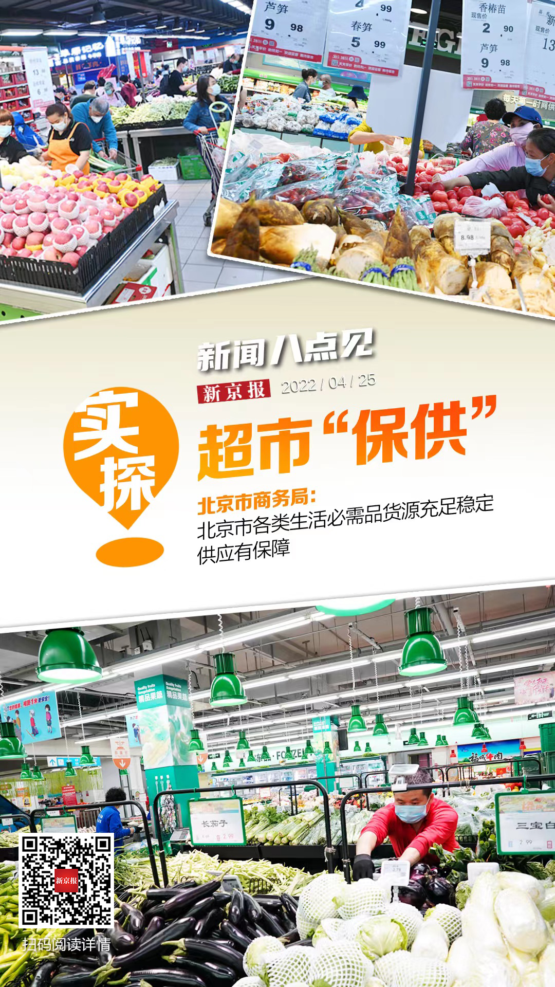 近日北京疫情形势严峻,生活必需品供应情况备受关注,不少人产生了要不要囤菜的担忧。4月25日,北京市商务局表示,北京市各类生活必需品货源充足稳定,供应有保障。新京报记者则实地探访多家商超和“菜篮子”基地,了解到不同渠道已采取多种措施全力保供。