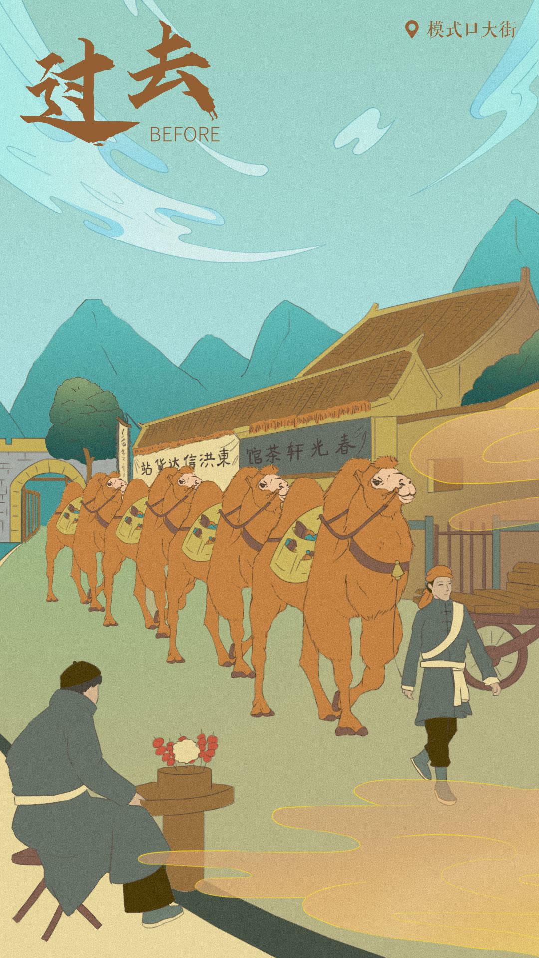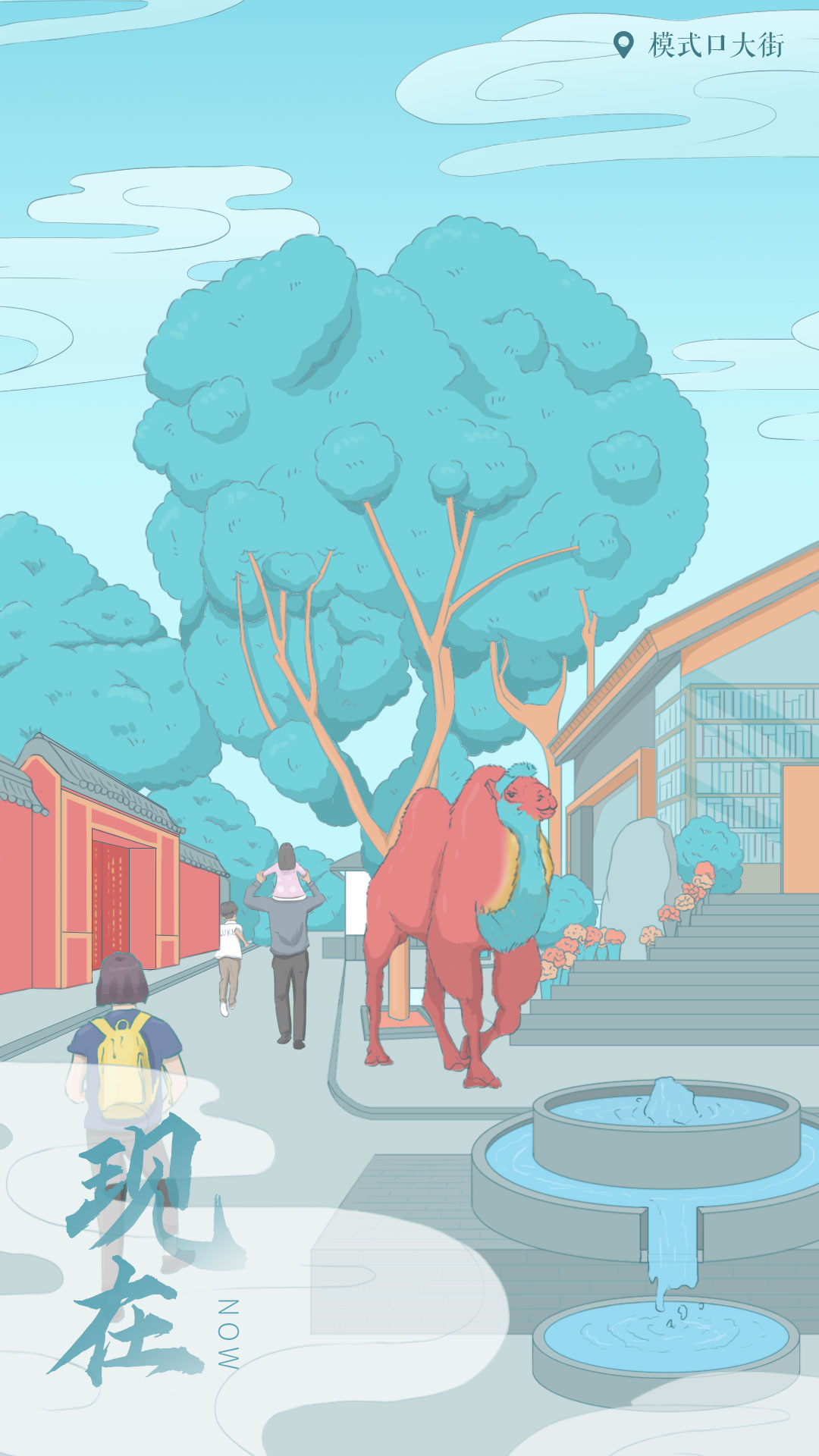 在老舍先生的作品《骆驼祥子》里,曾有主人公祥子拉着三匹骆驼走了三天三夜的情节,而这段路的起始点,就是模式口大街。历史上的模式口可是连接北京与塞外的交通要道,伴随着悠悠驼铃声,煤炭、木石就从这里输向北京各处。1500米长的龙形古道两侧还分布着法海寺、承恩寺等文物古迹。