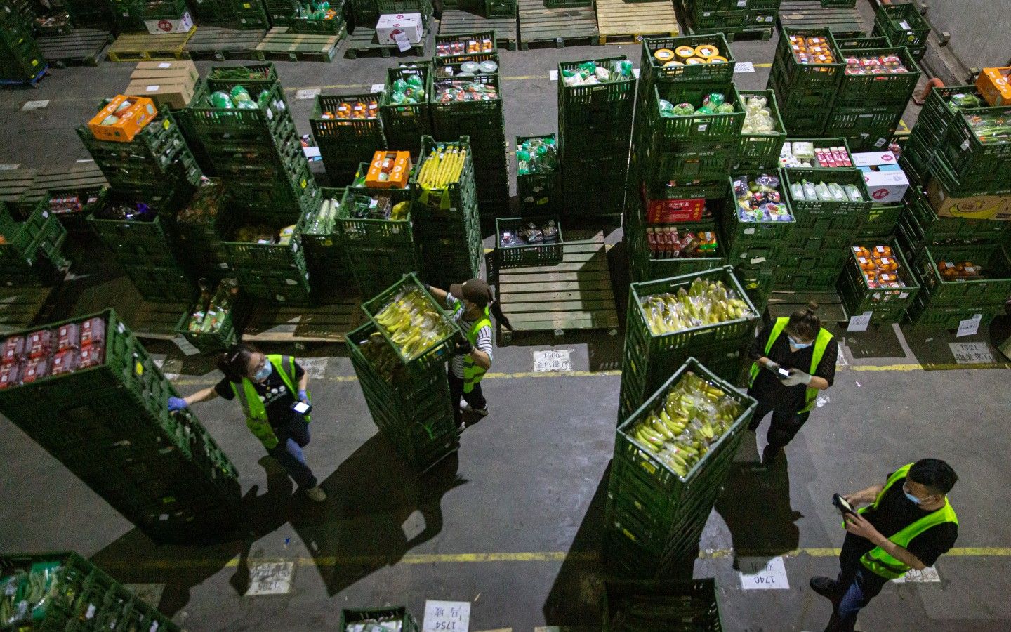物美南皋果蔬大库是一个“夜猫子”仓库:为保证生鲜商品的新鲜度,南皋果蔬大库通常是傍晚时分开始统一收货并分拣,在凌晨6点前为长安街以北的158家门店配送完毕。