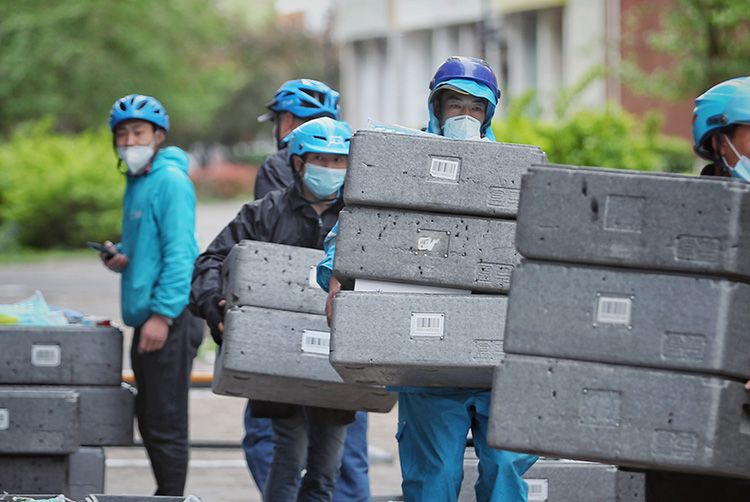 本次管控区范围内共有重点保供企业5 家,朝阳区相关部门、街道加强保供群体服务保障力度,畅通生鲜商超配货及服务最后一公里。京客隆为临时管控区提供暖心包,包括水果包、肉类包、蔬菜包,各街道安排专人做好对接,实现网购生活服务包精准落地。同时,朝阳区调度18辆蔬菜直通车开进临时管控区,为居民提供货足价稳的菜品保障。图为:朝阳区十里堡盒马鲜生,配送员正在分发货品。