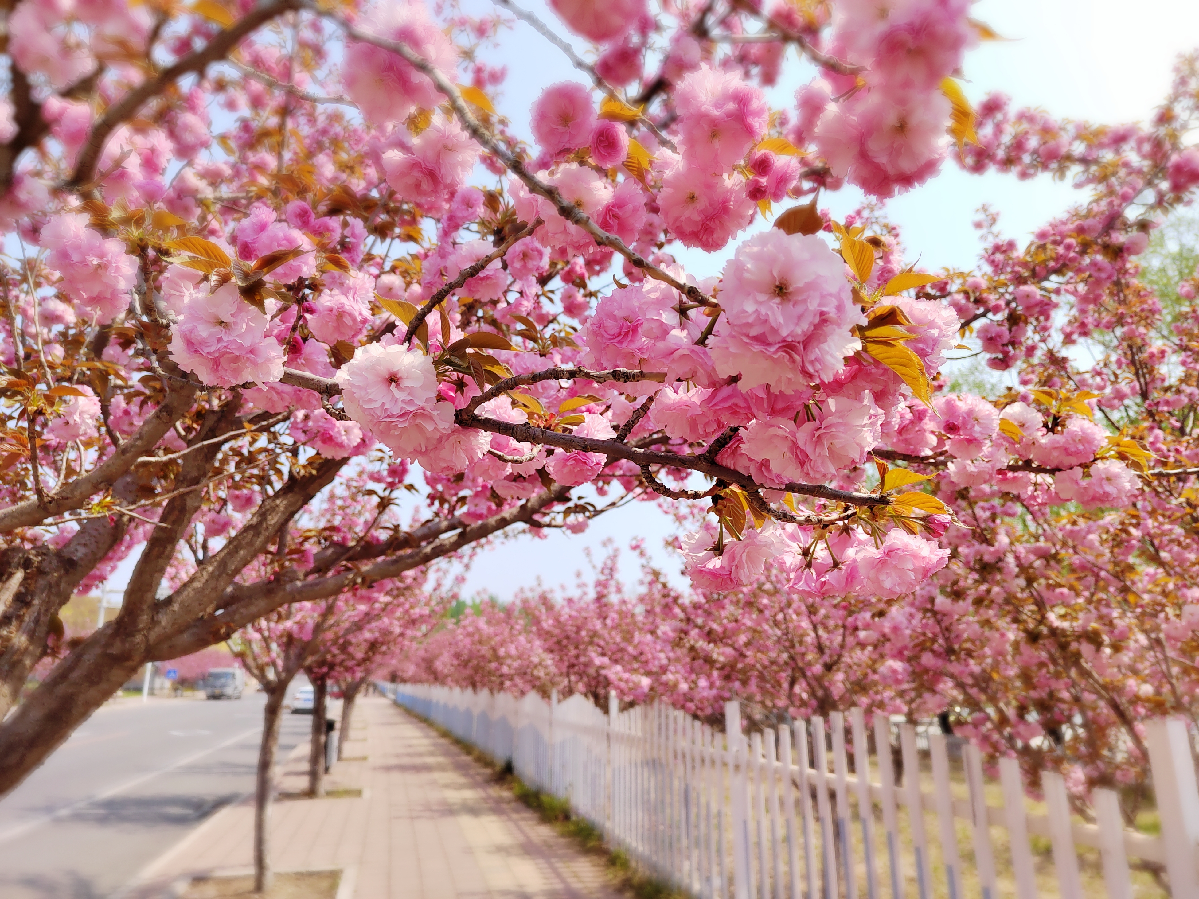 马坊镇樱花大道上,230棵樱花树浪漫绽放,一簇簇粉红的花朵挂满树梢,粉色的花瓣在风中翩翩起舞。纪然 摄