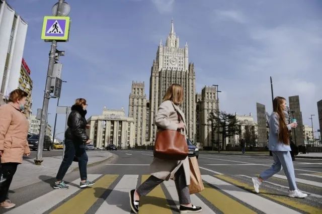 ▲2021年4月16日,在俄罗斯首都莫斯科,行人从俄罗斯外交部大楼附近走过。图/新华社