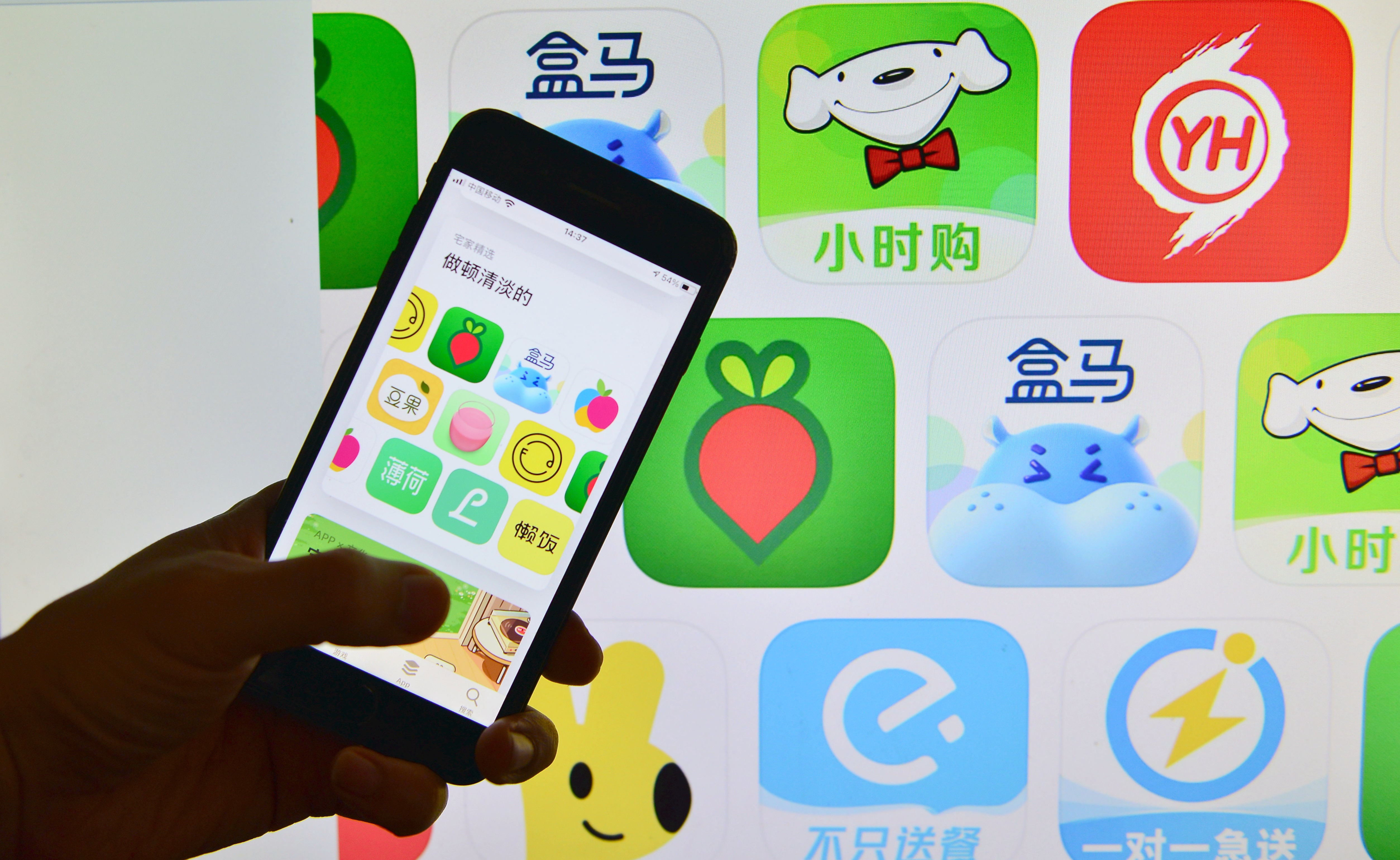 ▲2022年4月12日,辽宁省沈阳市,宅家精选,美团、饿了么、盒马、闪送、京东到家、永辉等应用。图/IC photo