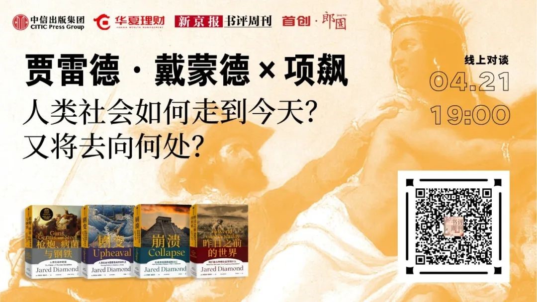 4月21日,新京报书评周刊联合中信出版集团,邀请两位颇受公众关注的作者做客新京报书评周刊·文化客厅直播间,围绕“人类社会的今天与明天”展开了一场对谈。浙江大学“百人计划”研究员邱昱为本场对谈活动特邀主持嘉宾。两位学者的交流从戴蒙德写作的动机出发,逐步深入,涉及对疫情、全球化、历史观的多层次反思。
