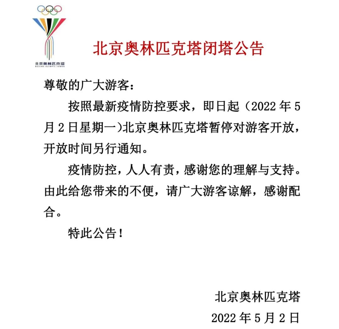 新京报讯 5月2日,奥森公园在其官微发布公告,称奥林匹克塔闭塔。
