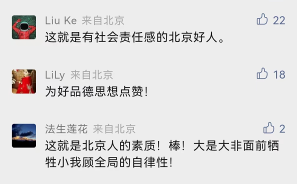 网友纷纷为刘先生点赞。北京西城官方微信截图