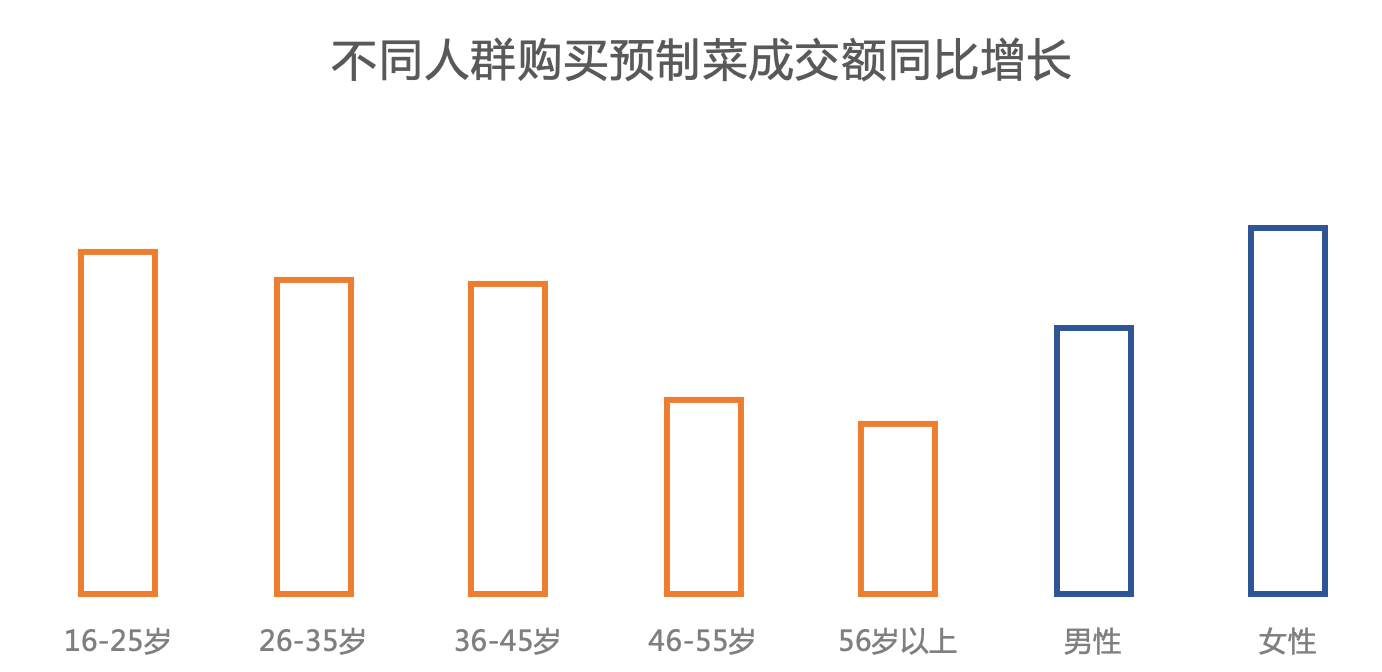 这其中,年轻人再次成为引领消费的主力。35岁人群购买预制菜金额占全部人群的40%左右,而且增速还在进一步加快。