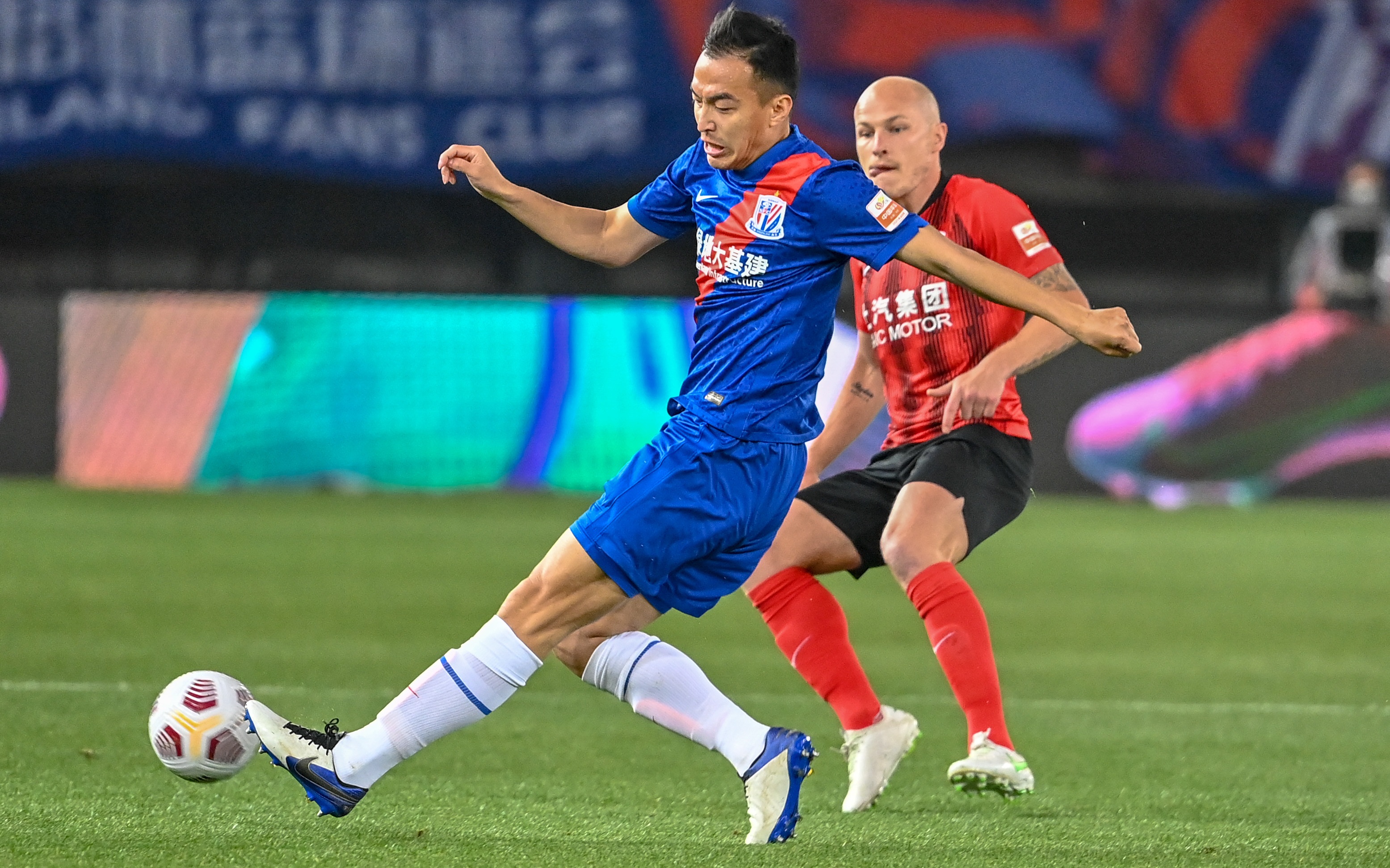 去年中超联赛,申花老将冯潇霆在比赛中带球。 资料图/新华社