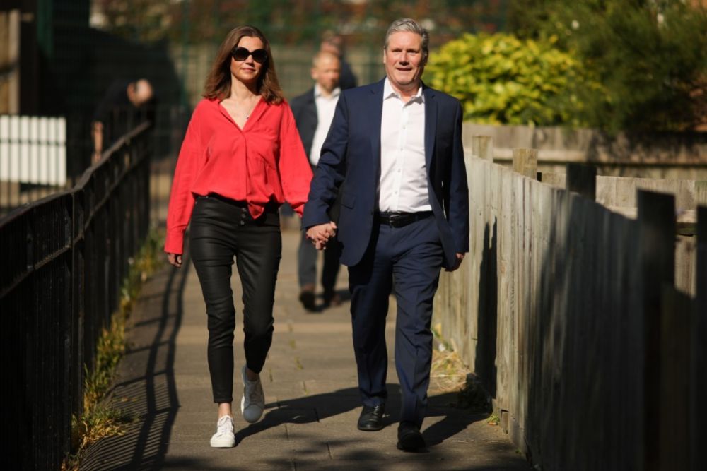 5月5日,英国工党领袖斯塔默(前右)与妻子前往伦敦一家投票站,准备投票。新华社发(蒂姆·爱尔兰摄)
