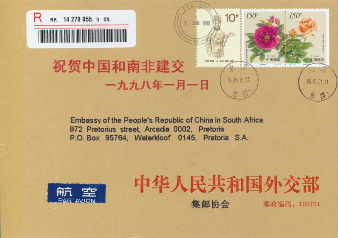 马小玲回顾了外交封的诞生历程。其创意来源可以追溯到1997年外交部集邮协会为庆祝香港回归祖国组织的我国驻外使节环球实寄封活动。“当时,很多集邮爱好者很期盼能发行一套外交题材纪念封,来展示新中国辉煌的外交成就。这与中国集邮总公司的愿望一拍即合,外交封也就应运而生。后来我们以1998年1月1日中国与南非建交公函封为雏形进行设计,1999年1月1日首枚外交封问世,这在中外集邮史上堪称开先河之举。”