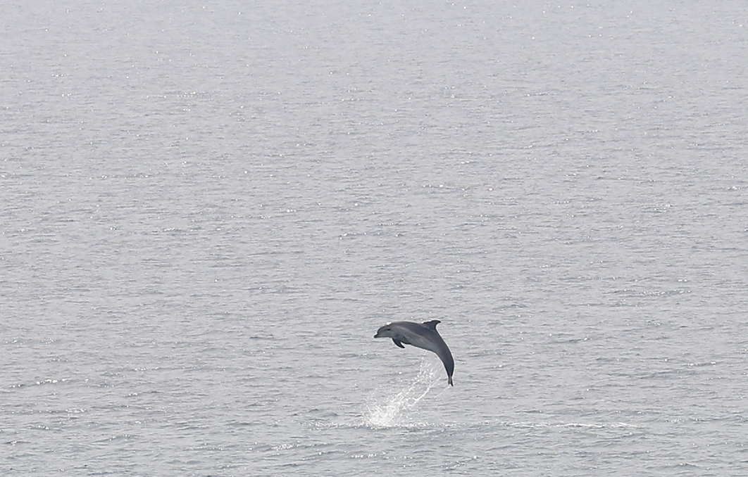 当地时间2021年4月28日,土耳其埃迪尔内,一只海豚跳入萨罗斯湾,这是爱琴海北部的一个海湾,位于加利波利半岛以北。图/IC photo