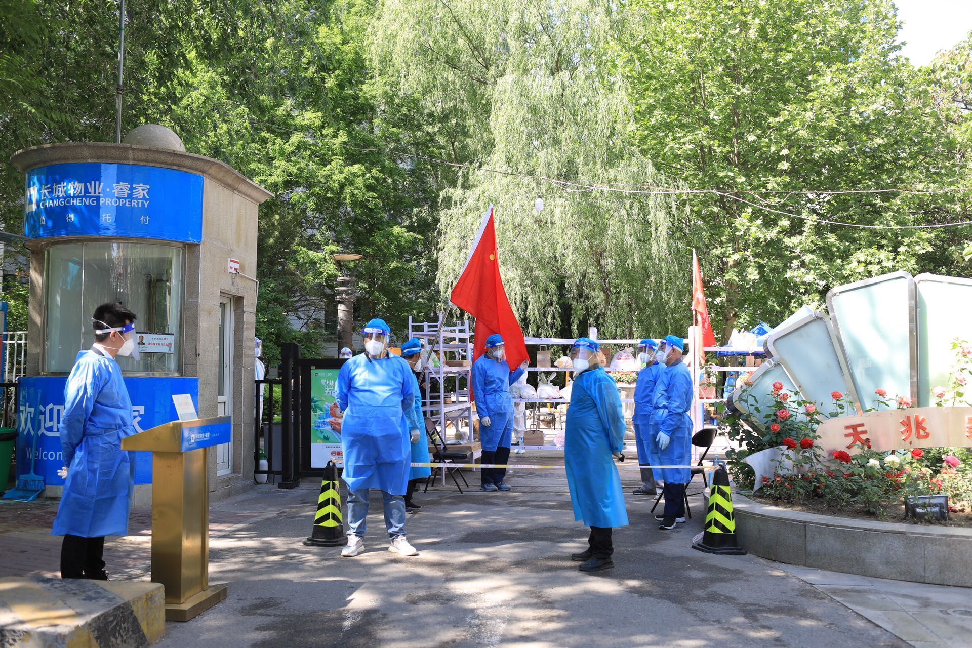 多方力量参与服务,小区门口用货架搭起“防火墙”