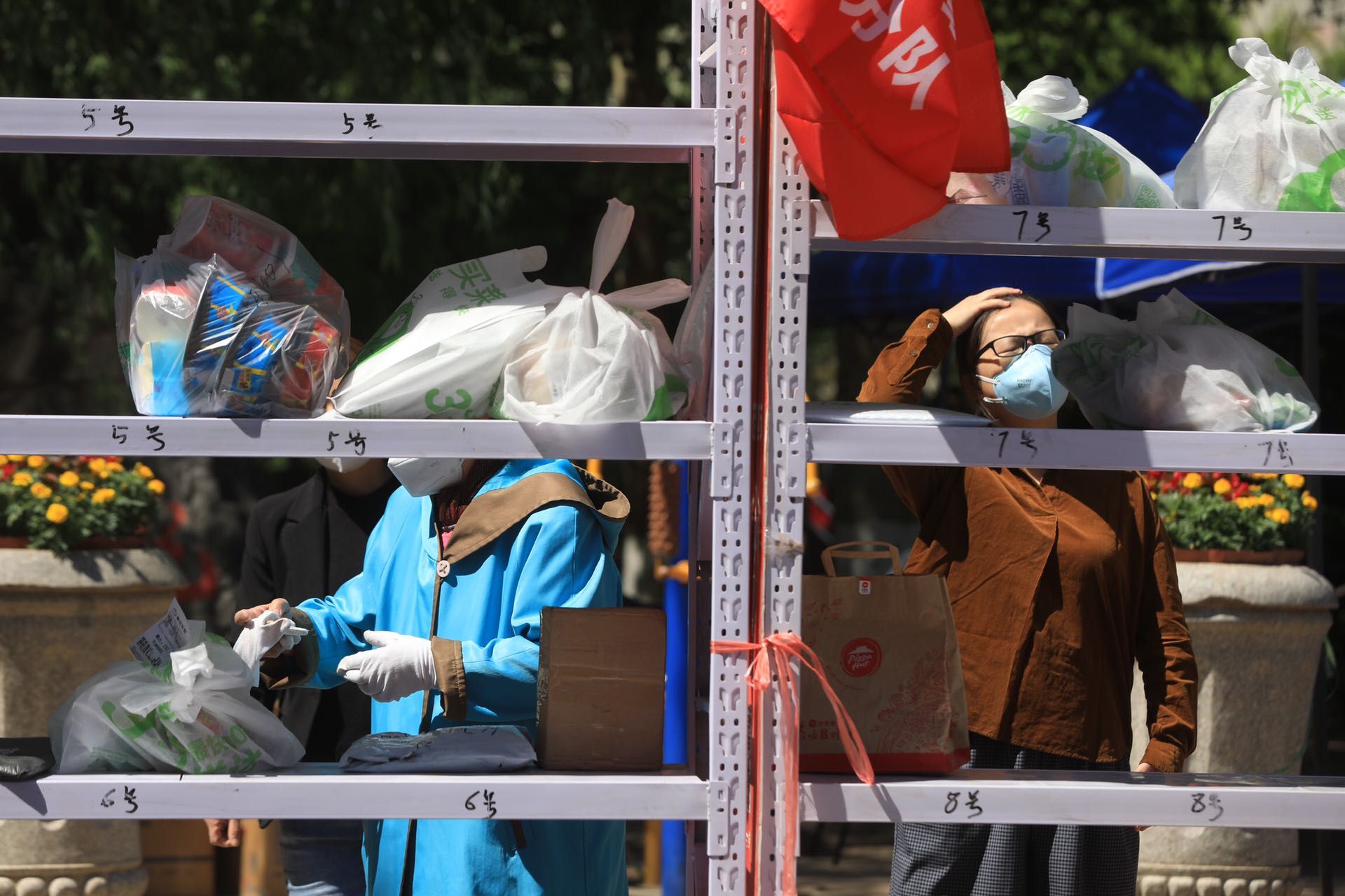 “快递和外卖送到管控区边缘,接下来由我们转运到门口!”社区志愿者路红英每隔一段时间就会将快递和外卖集中拉至小区门口的货架处,短短半小时,这样的转运,她已经来回跑了五趟。