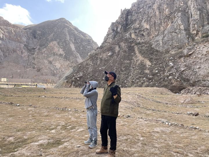 5月的青海气温渐升,在海东市平安区,山间的风依旧呼啸。王舰艇裹着外套,戴上帽子和手套,时而用望远镜观察远处山谷里一处鸟巢,时而调整相机角度进行拍摄,时而打开观测笔记录……鸟巢里,一对刚迎来雏鸟破壳的黑鹳正在“换班”。
