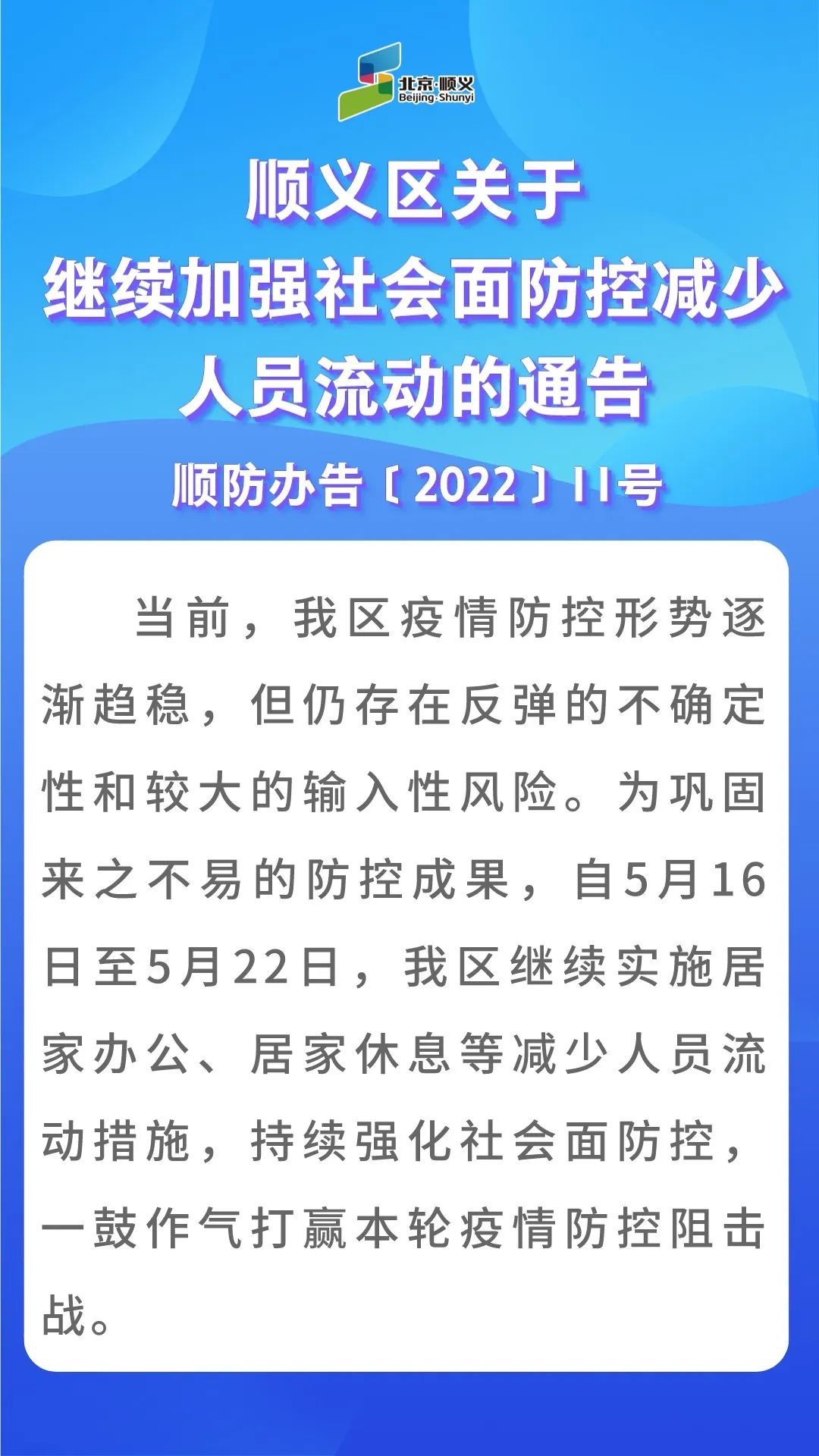 北京顺义:5月16日至22日继续实施居家办公、居家休息