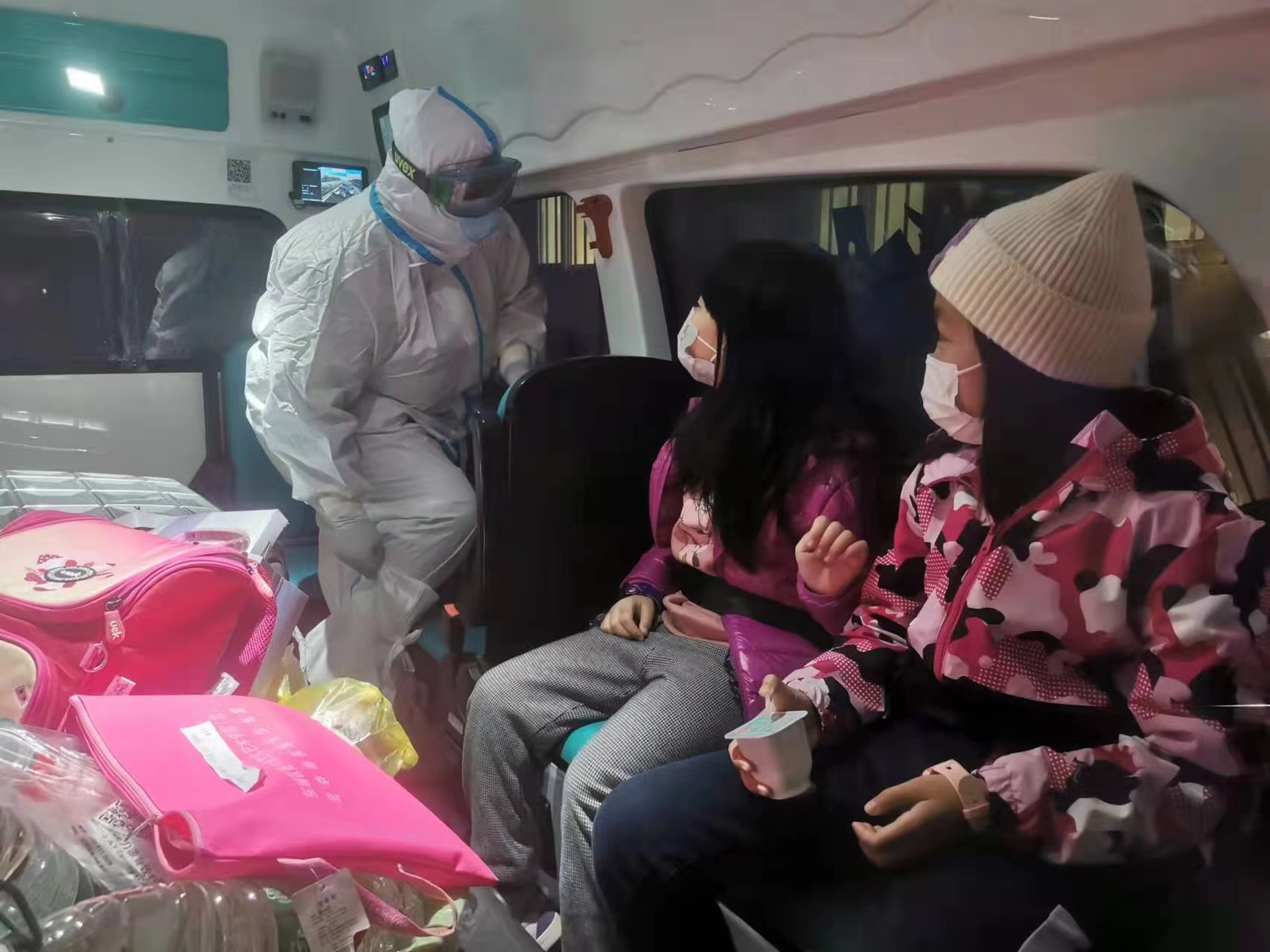 遇到这种人员比较多的时候,我们的救护车就负责转运风险比较高的密接人员,比如确诊病例的同屋或家属。其他的次密接人员,比如确诊病例同楼层、同单元的人员,利用中巴车来转运。