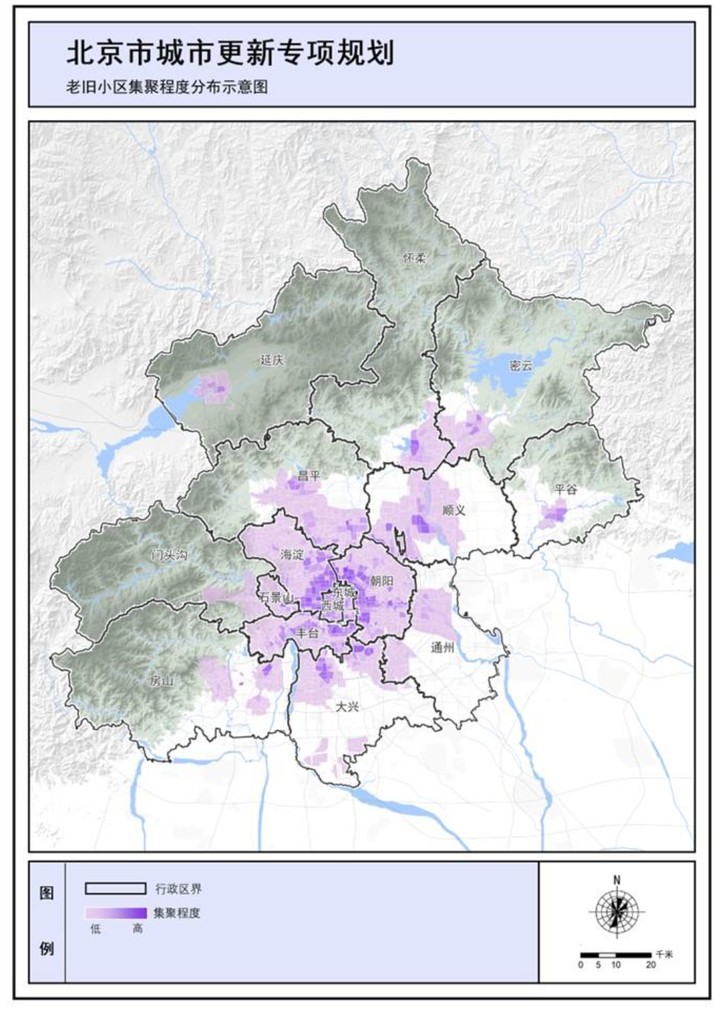 老旧小区集聚程度分布示意图。图源:《北京市城市更新专项规划(北京市“十四五”时期城市更新规划)》