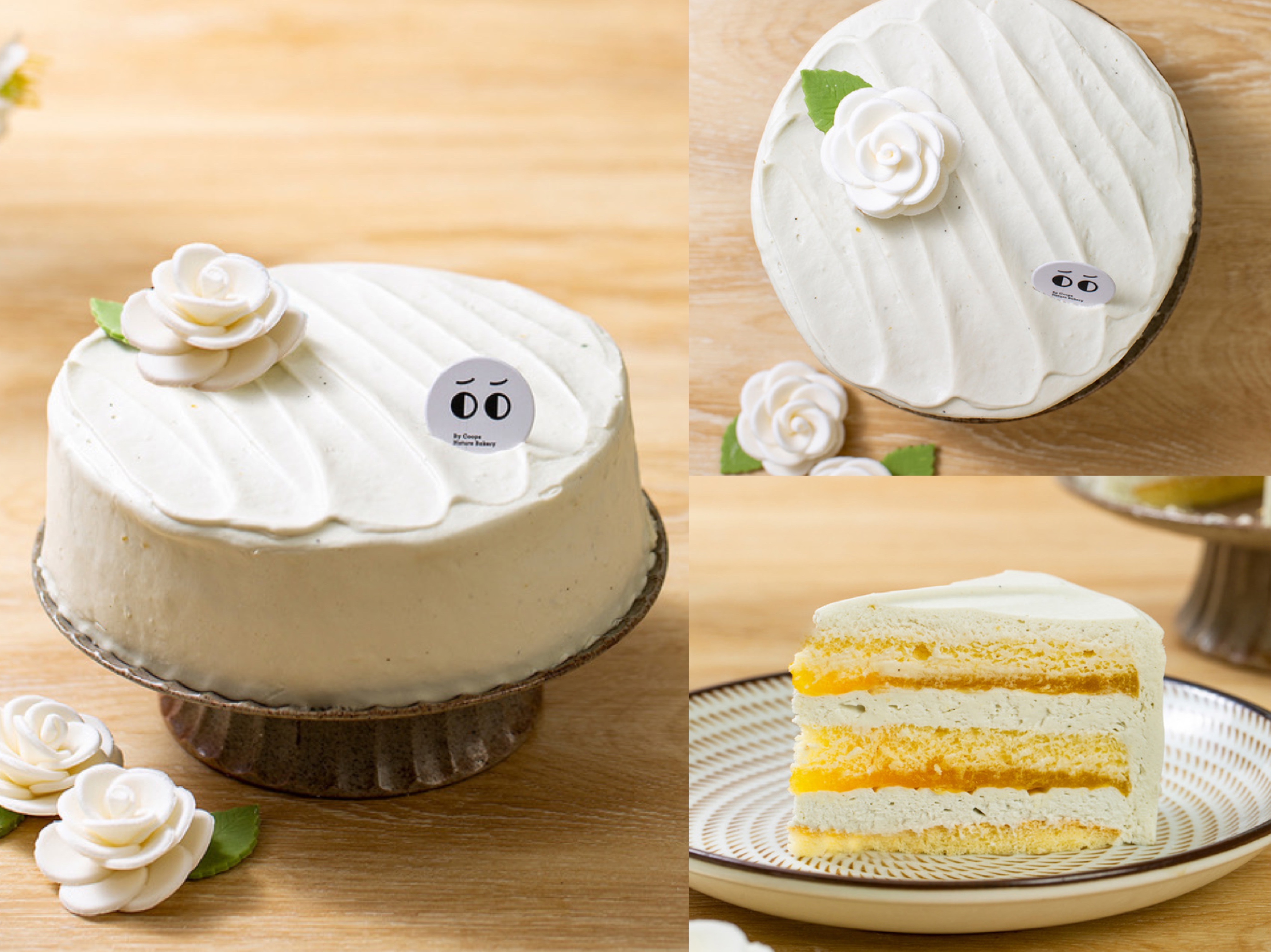 象征着纯真无邪、理想爱情的山茶花,让这个“520”充满神秘的高级感。三层原味蛋糕坯里,加入了山茶花乌龙风味慕斯、柑橘柚子果泥馅。花香和乌龙茶清新淡雅,是爱情中的舒适与自洽。而酸甜的柑橘柚子,则是舒适关系中时不时需要的“小惊喜”。表面的装饰简单恬淡,一朵翻糖的雪白山茶花,也许更胜过繁花似锦。