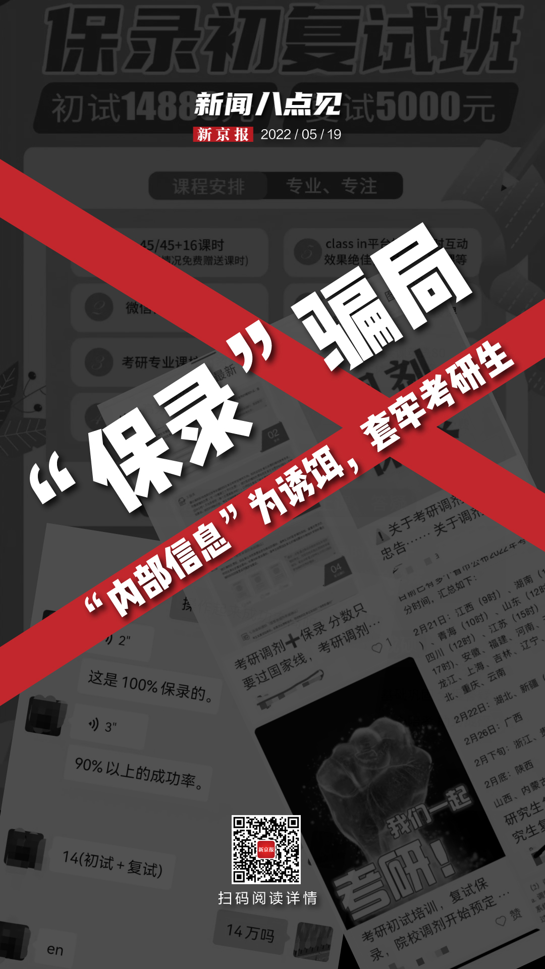 5月5日,全国硕士研究生招生调剂服务系统关闭,2022年考研正式落幕。和高考一样,考研也是每年教育领域的重头戏,考研难,竞争大都是现状。所以一些人开始想走捷径,有考生想找人“保过”,也有机构开始打着“保录”的噱头干起了违法之事。