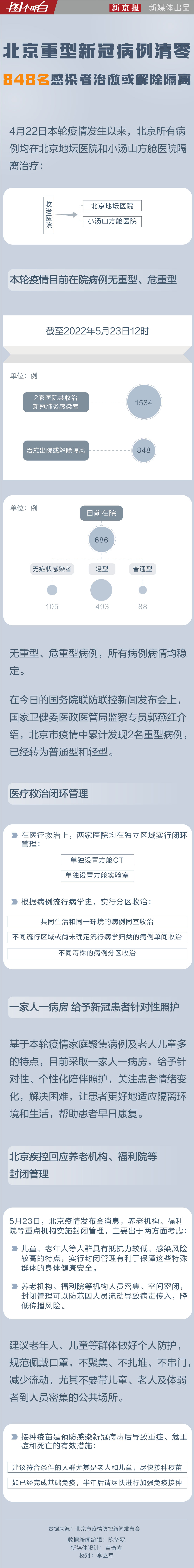 好消息来了!北京重型、危重型病例清零,已有848名感染者治愈出院或解除隔离。北京目前还有多少感染者在院?医疗救治如何进行闭环管理?一图看懂: