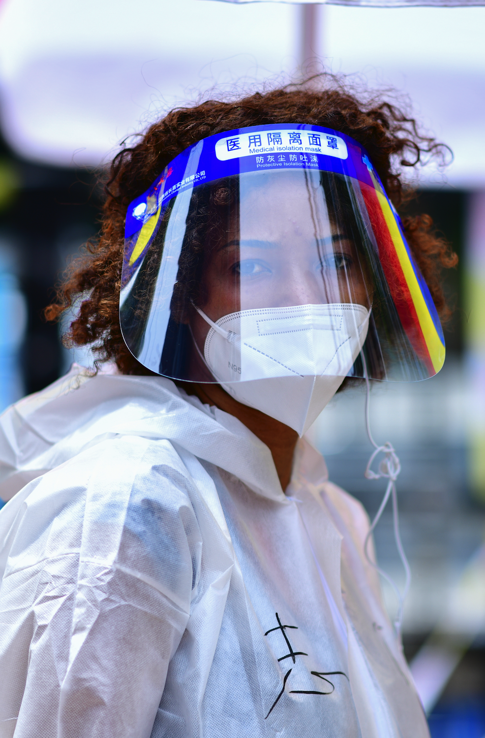 人们能一眼认出她,或许是因为一头蓬起来的卷发和棕褐色的皮肤,又或许是她露出的一双眼睛,总闪烁着友好和热情。“做核酸了吗?”“你今天真漂亮呀!” 她用流畅的中文,大声招呼每一个人,欢快的声音在人群中穿梭。