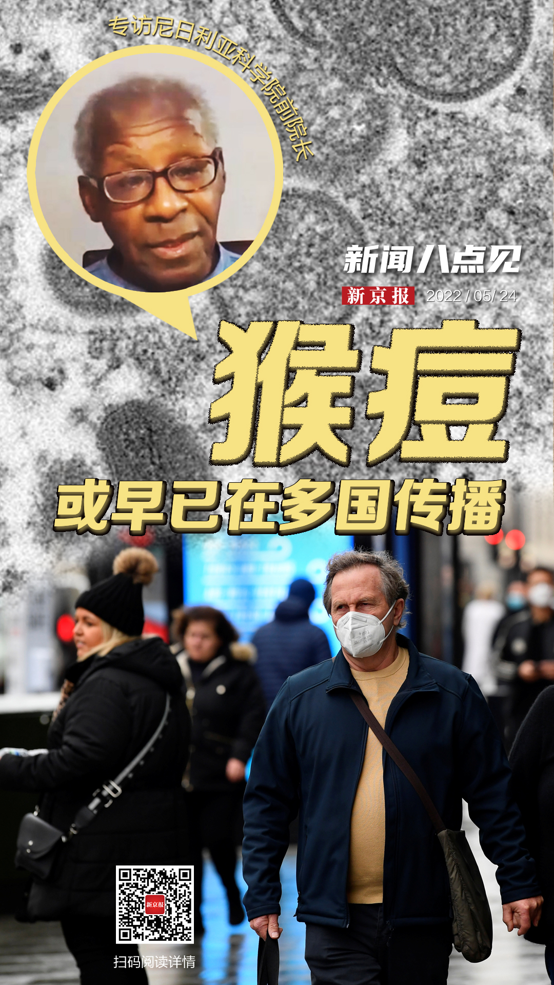 最近出镜率很高的猴痘病毒,此轮已在15个国家传播。此前,猴痘一般在中西非地区出现。它是否出现新的传播方式?或发生新的变化?对此,新京报专访曾参与相关医疗和防护工作的尼日利亚科学院前院长奥耶瓦勒·托莫里,为你解答。