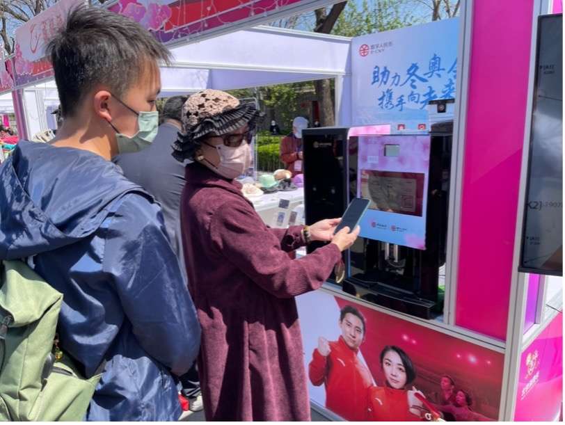 图 观众使用数字人民币钱包体验“一分购”咖啡