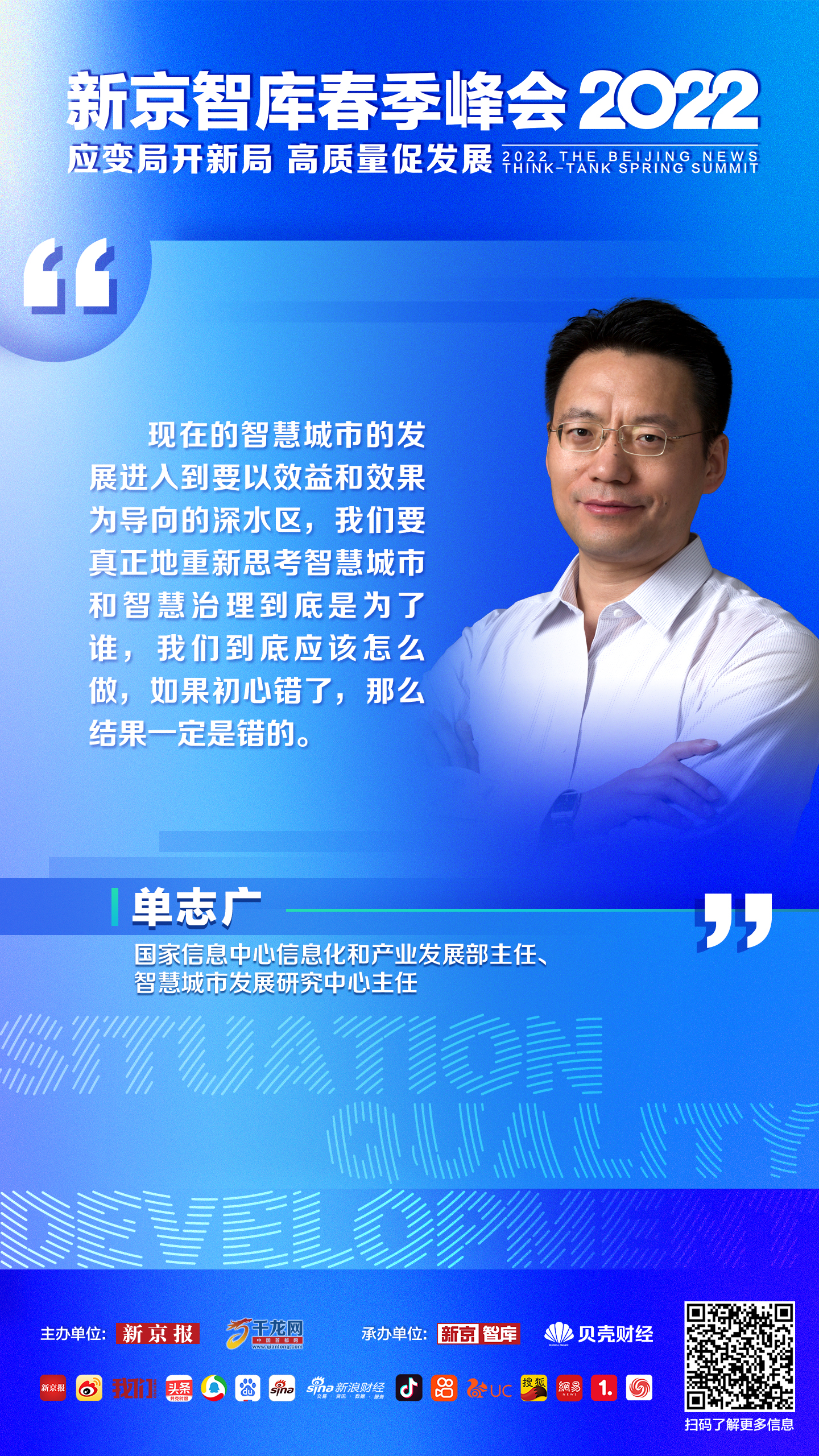 新京报讯(记者 肖隆平)5月27日,在2022新京智库春季峰会“线上社会,治理有‘数’”主题论坛上,国家信息中心信息化和产业发展部主任、智慧城市发展研究中心主任单志广发表了主题为“数字技术赋能城市治理,推进智慧城市高质量发展”的演讲。在演讲中,单志广表示,第十四个五年规划和2035年远景目标纲要中,以“智能”“智慧”“数字”“数字化”为关键词的内容非常多,加起来超过了100处。这预示了“十四五”时期,智慧城市、智慧治理将进入改革突破、模式创新和成效凸显的深水区。