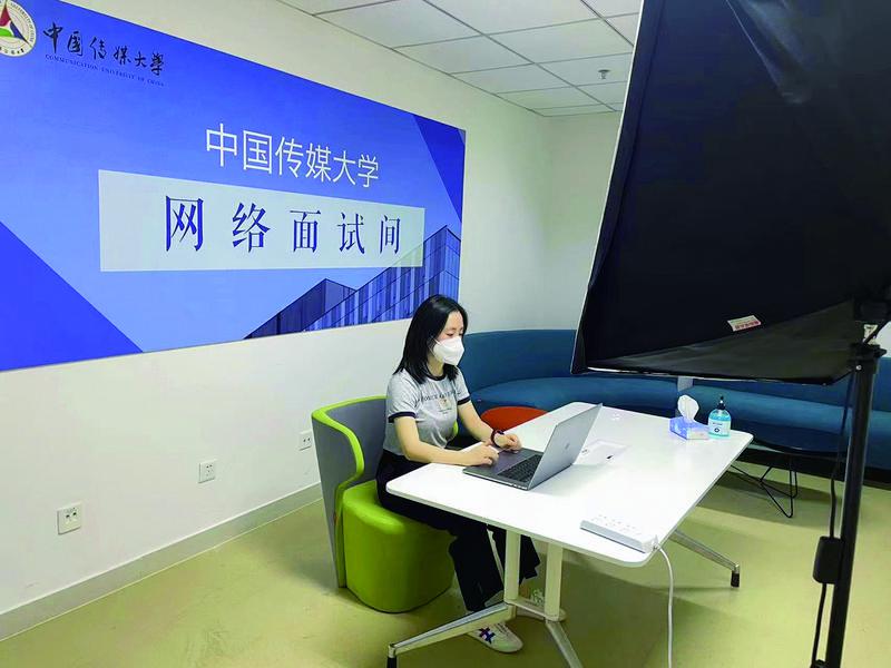 新京报记者梳理发现,受疫情影响,全国多所高校宣讲会和招聘面试改为线上进行。为给求职学生创造更好的面试环境,中国传媒大学、首都师范大学、北京航空航天大学、北京外国语大学、云南大学等多所高校,都打造了有背景板、专用补光灯等设备的网络面试间。