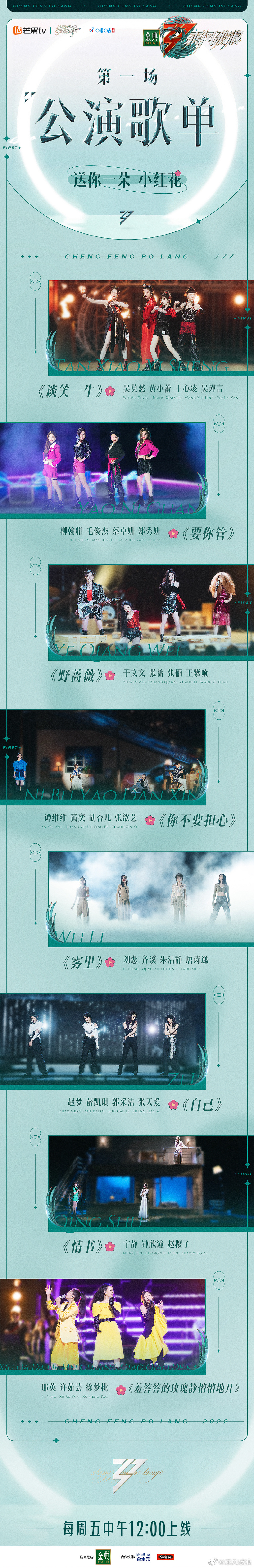 《乘风破浪》发布第一场公演歌单,12点上线