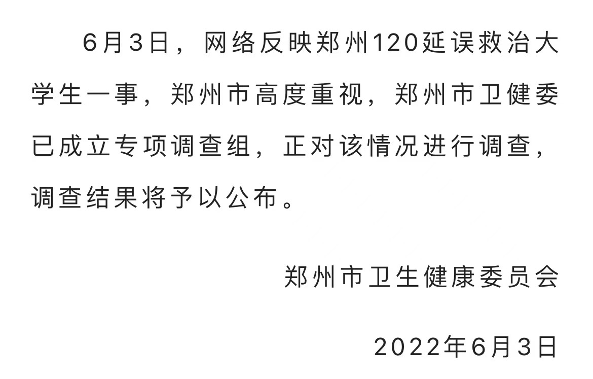 郑州市卫健委对网传120延误救治大学生一事展开调查