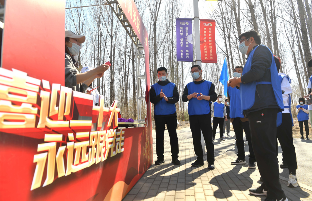 ▲4月2日,北京顺义区2022年清明文化节暨清明健步行活动在北京市共青滨河森林公园举办。新京报记者 李木易 摄