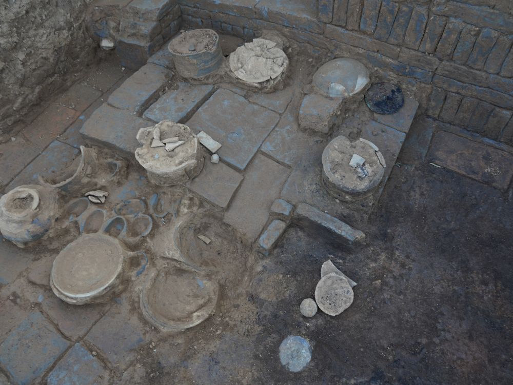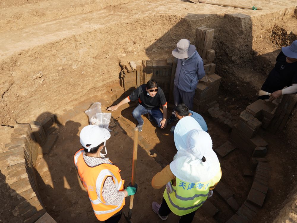 天津市文化遗产保护中心本次考古发掘现场负责人尹承龙介绍,现场考古发掘工作目前已清理完成东汉时期墓葬3座,总体保存较好,均为南北向斜坡墓道横穴砖室墓,随葬品有陶罐、铜镜等日常用器和陶仓、陶灶、陶井等模型明器等。根据墓葬的分布规律推断,有可能是一处家族墓地。