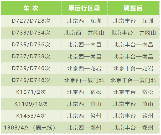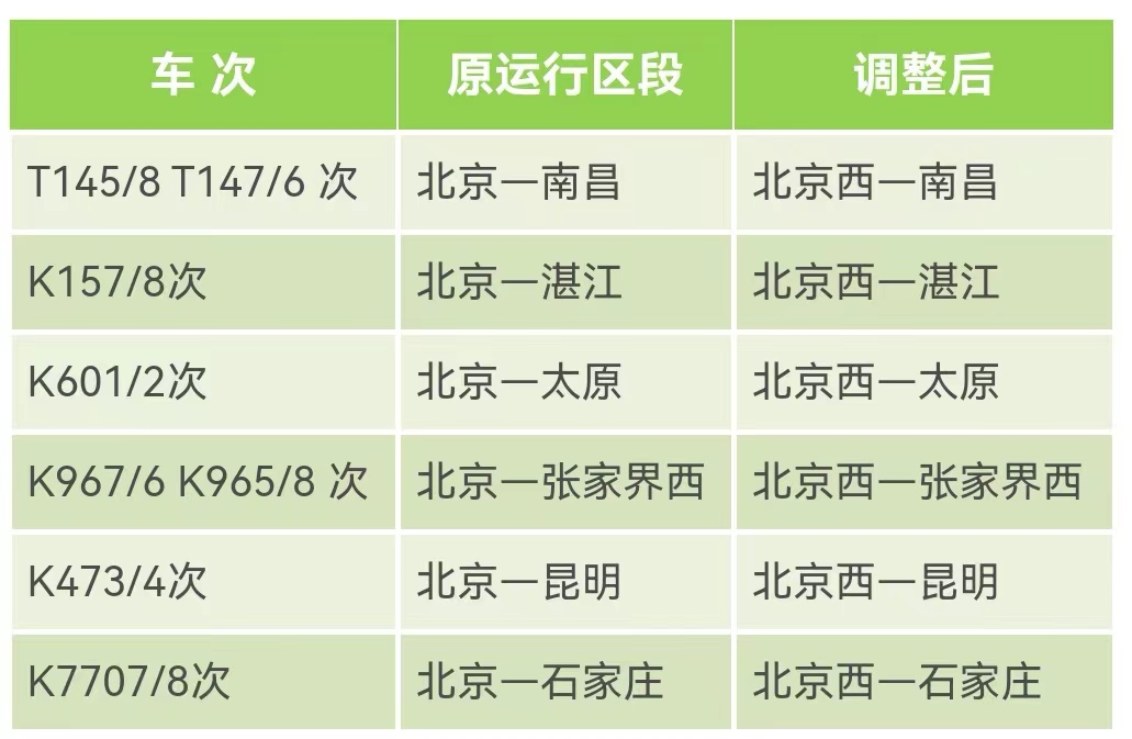 6月20日调图,涉及北京西站和北京丰台站多趟列车